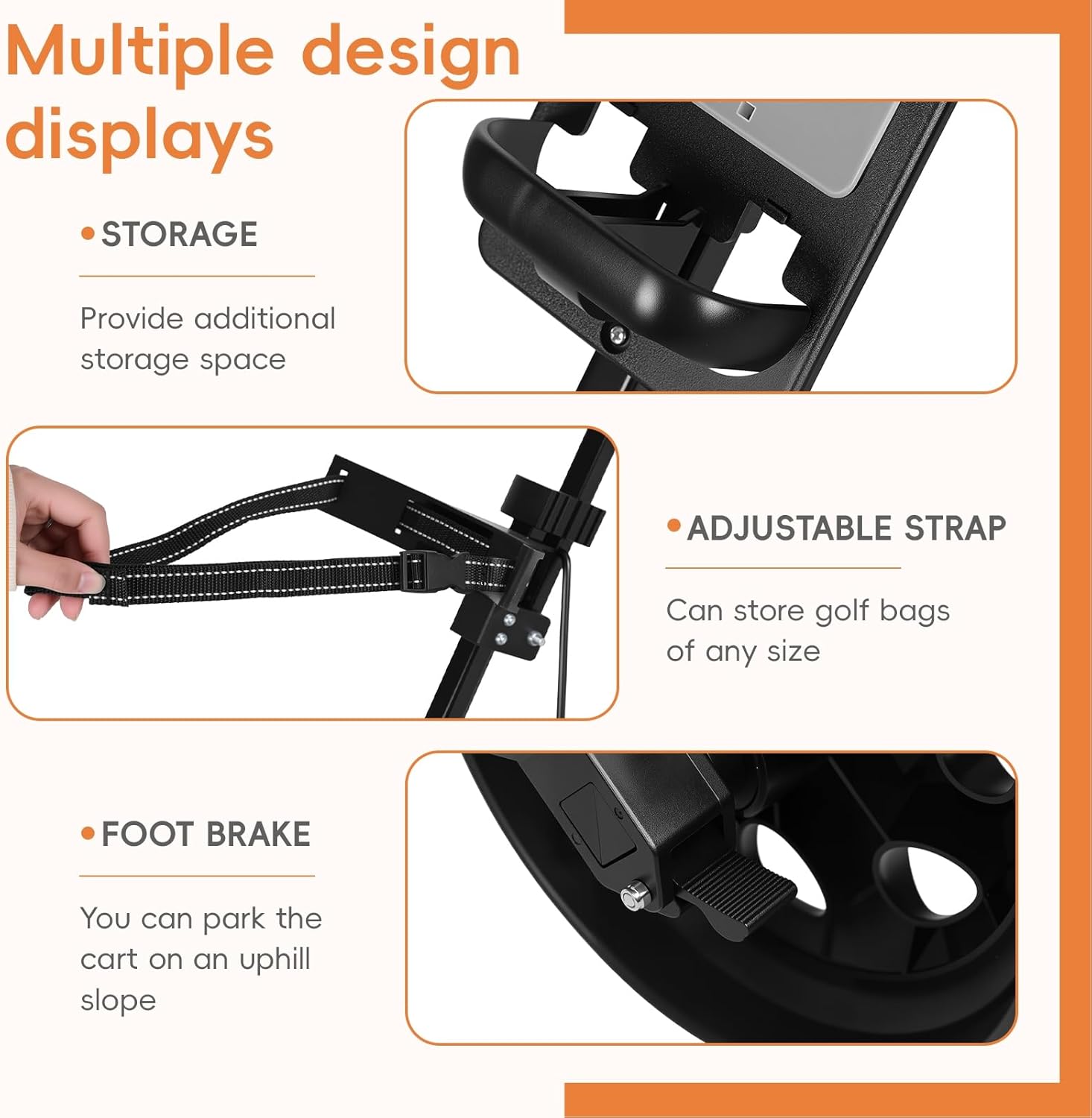 Description:Item Name: Golf CartMaterial: IronFeatures: Wear-resistant PP Wheels, Tee Holder, Storage ScoreboardSize Details:L: 69cm/27", W: 98cm/38.5", H: 112cm/44" (Approx.) Notes:Due to the light and screen setting difference, the item's color may be slightly different from the pictures.Please allow slight dimension difference due to different manual measurement.Package Includes:1 x Golf Cart