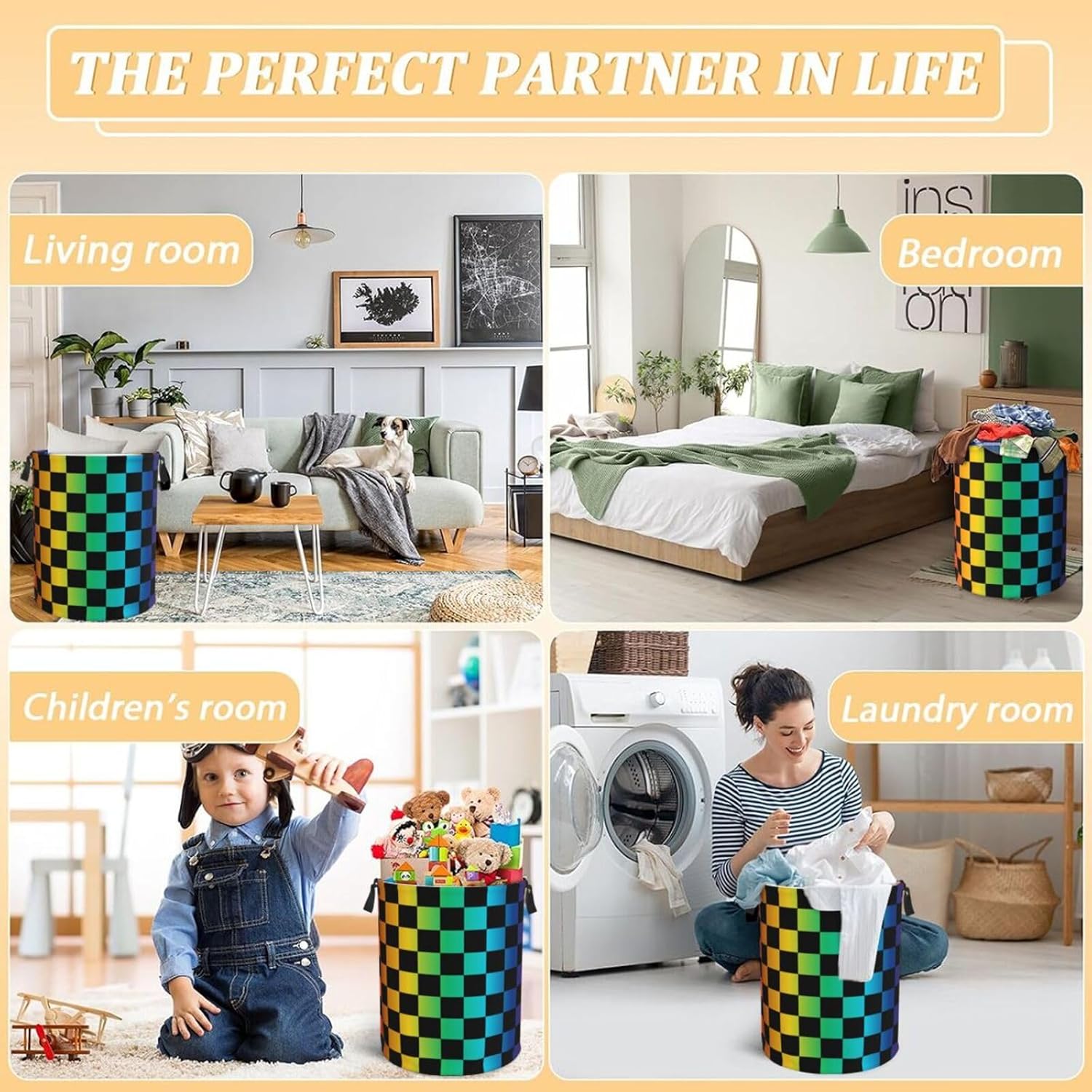 Jbofyee Laundry Baskets Blend Functionality With Aesthetic Appeal!Two Sizes Available:19.6 x 15.7 x 15.7 In / 62L16.5 x 13.8 x 13.8 In / 38LFeatures:Large Capacity: Suitable for family to store dirty clothes washing, socks, books, shoes, towels and other household goods, keep the house clean and tidy.Stand Steady: The collapsible laundry basket can stand steady, so you don't have to worry about the storage ability, it can contain the toy, cloth, book and something else properly.Waterproof: Made of waterproof Oxford material protect your floor from wet, easy to clean.Our laundry baskets are available in fun, trendy and colors, a perfect for home ,office, craft room, adds a splash of color to any room while also being functional.Note:Due to the different packaging methods, you may notice some creases upon arrival. This is a normal phenomenon! Rest assured, after being filled with items, the hamper will gradually regain its original shape.