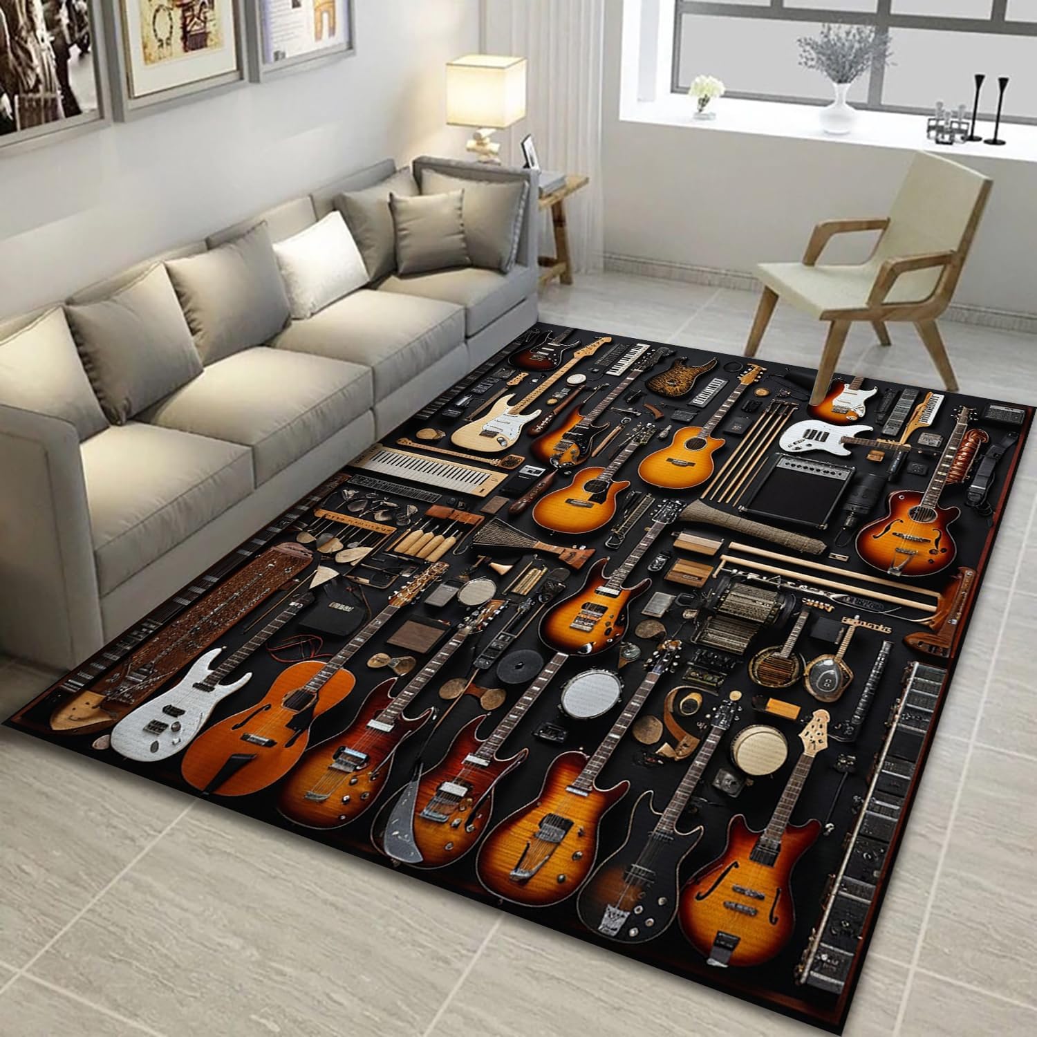 Transform Your Space with the Stunning Guitar Area RugBring a touch of creativity and elegance to your home with the Guitar Rug. Designed to captivate attention and add depth to any room, this rug is a perfect blend of art and functionality. Premium Quality & ComfortSurface Material: Made from high-quality polyester fabric, this Guitar Rug offers a soft, luxurious texture underfoot. Non-Slip Backing: The durable rubber backing keeps the rug firmly in place, even on smooth surfaces like tile, hardwood, or carpet. This ensures both safety and stability, making it ideal for homes with children and pets.Perfect Thickness & Durability: Offering the perfect balance between cushioning and durability, this rug provides comfort without being too thick. Reinforced edges prevent fraying and ensure it stays in great shape for years.Easy MaintenanceMachine Washable: Effortlessly clean your rug by tossing it in the washing machine. It’s easy to maintain and will continue to look fresh for years.Quick Drying: The rug dries quickly, helping you keep your space neat and tidy with minimal effort.Fade & Stain Resistant: Crafted with high-quality dyes, the colors and intricate details of the rug remain vibrant, even after multiple washes.Order now and transform your home with the dynamic, high-qualityGuitar Rug.#guitar rug, guitar-shaped rug, guitar area rug, guitar carpet, music room rug, musical instrument rug, guitar decor rug, guitar print rug, guitar theme rug, guitar design rug, guitar player rug, guitar lover rug, guitarist rug, guitar pattern rug, guitar motif rug, guitar studio rug, guitar room rug, guitar shaped area rug, guitar shaped carpet, guitar shaped floor mat