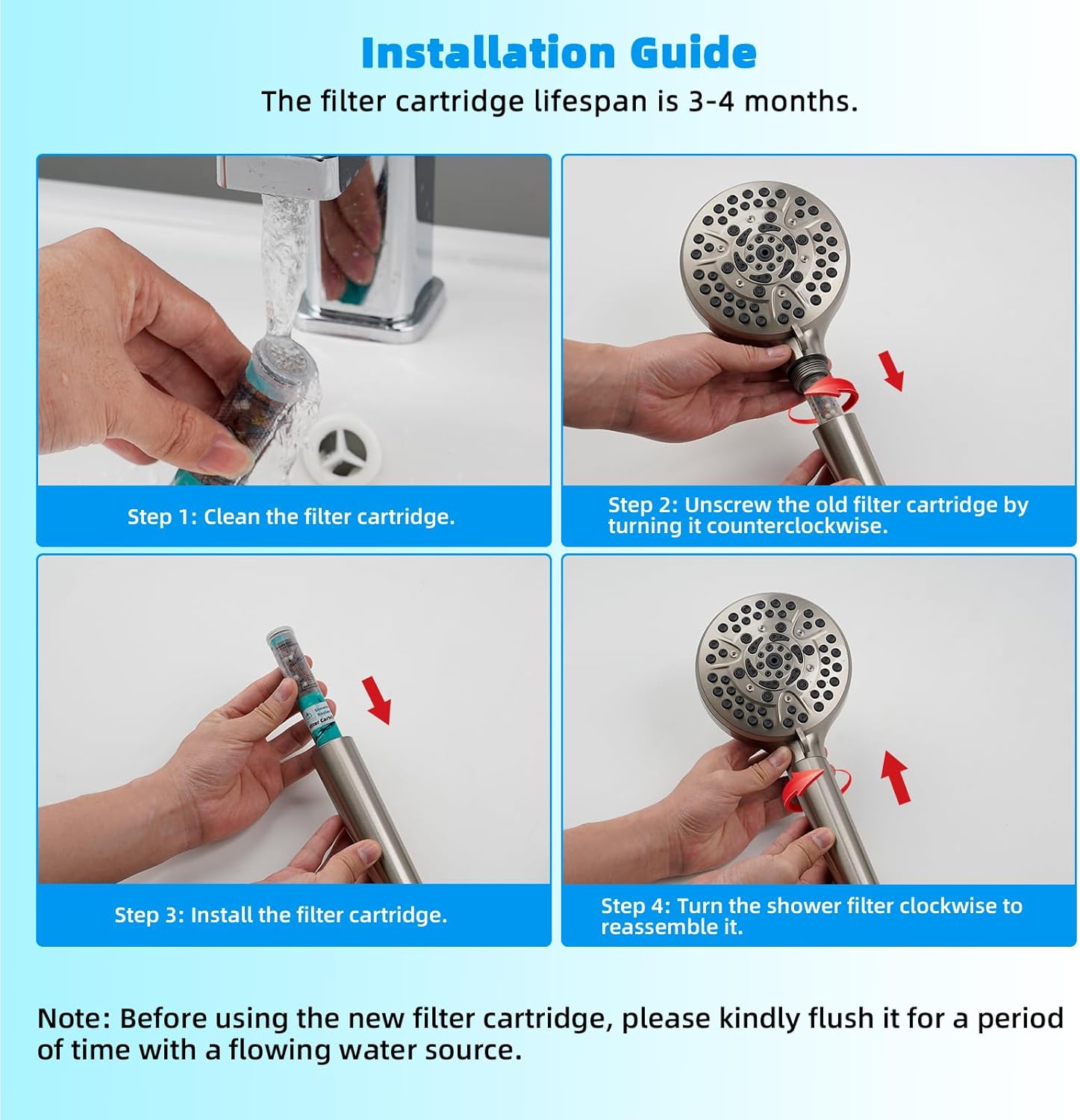 The 20 stages replacement shower filter optimizes your shower experience by softening water and minimizing the negative effects of minerals on your skin and hair. It also prevents clogging of the shower filter and removes scale, sand, and other impurities. With improved water flow and reduced scale damage to the shower nozzle, this filter extends its service life. Enjoy a cleaner and healthier shower experience with this advanced filtration system. Enhance your shower experience with the Hibbent Handheld Shower Head. Its ergonomic handle ensures comfort, while ten spray settings provide versatility. Quick to install, it includes a 6.6 ft. metal hose and angle-adjustable bracket for hands-free use. The 71-inch no-kink stainless steel hose offers flexibility, and touch-clean spray holes make maintenance effortless. Crafted from long-lasting ABS, this shower head connects easily with a standard G1/2-inch thread. Package Includes:shower head, 71-inch hose, adjustable bracket, installation instructions, and washers.
