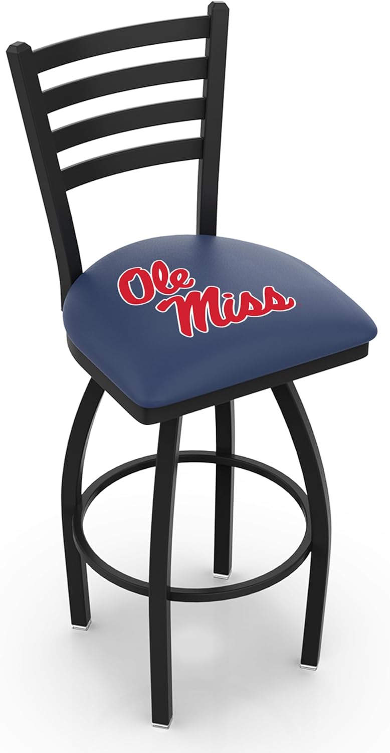 Made for the ultimate sports fan, you will be proud to show where your loyalty lies with this impressive Officially Licensed stool from the Holland Bar Stool Co. This L014 swivel logo stool has a defined Ladder Back style that doesn't just add comfort, but sophistication. A state of the art print process is used in applying specially formulated UV vinyl ink in numerous stages to produce a sharp, crisp, clear image to ensure a perfect reproduction of the logo. You won't find a higher quality logo stool on the market. The frame is made from commercial quality 16 gauge, 1 1/4 inch tube steel with solid Mig welded joints to strength and durability. The powder coated finish resists chips and scratches and ensures a long-lasting, rich appearance. The cushion seats are of the highest quality as well, utilizing a breathable, commercial grade vinyl. At the heart of the cushion is 2 1/2 inches of highly-dense, US made foam that provides maximum support and will not breakdown in a couple years. If you're going to finish your bar, game room, or man cave do it right- with a logo stool made in the USA by the Holland Bar Stool Co.