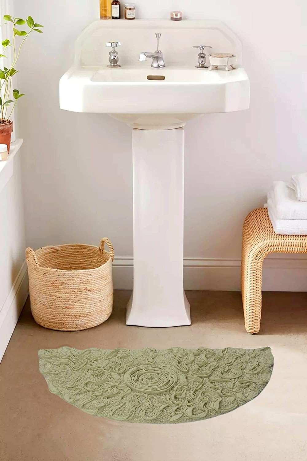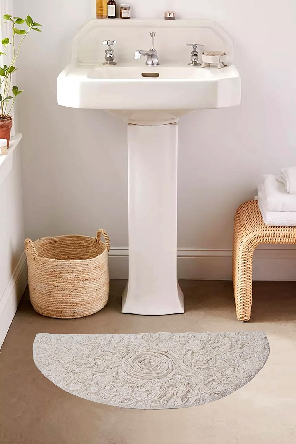 • Easy Maintenance & Multiple Sizes: Keeping your bath rugs pristine is a breeze. Our Bell Flower Collection rugs are easy to clean and maintain, retaining their beauty and plushness over time. Choose the perfect size for your bathroom; we offer a range of dimensions to fit any space.