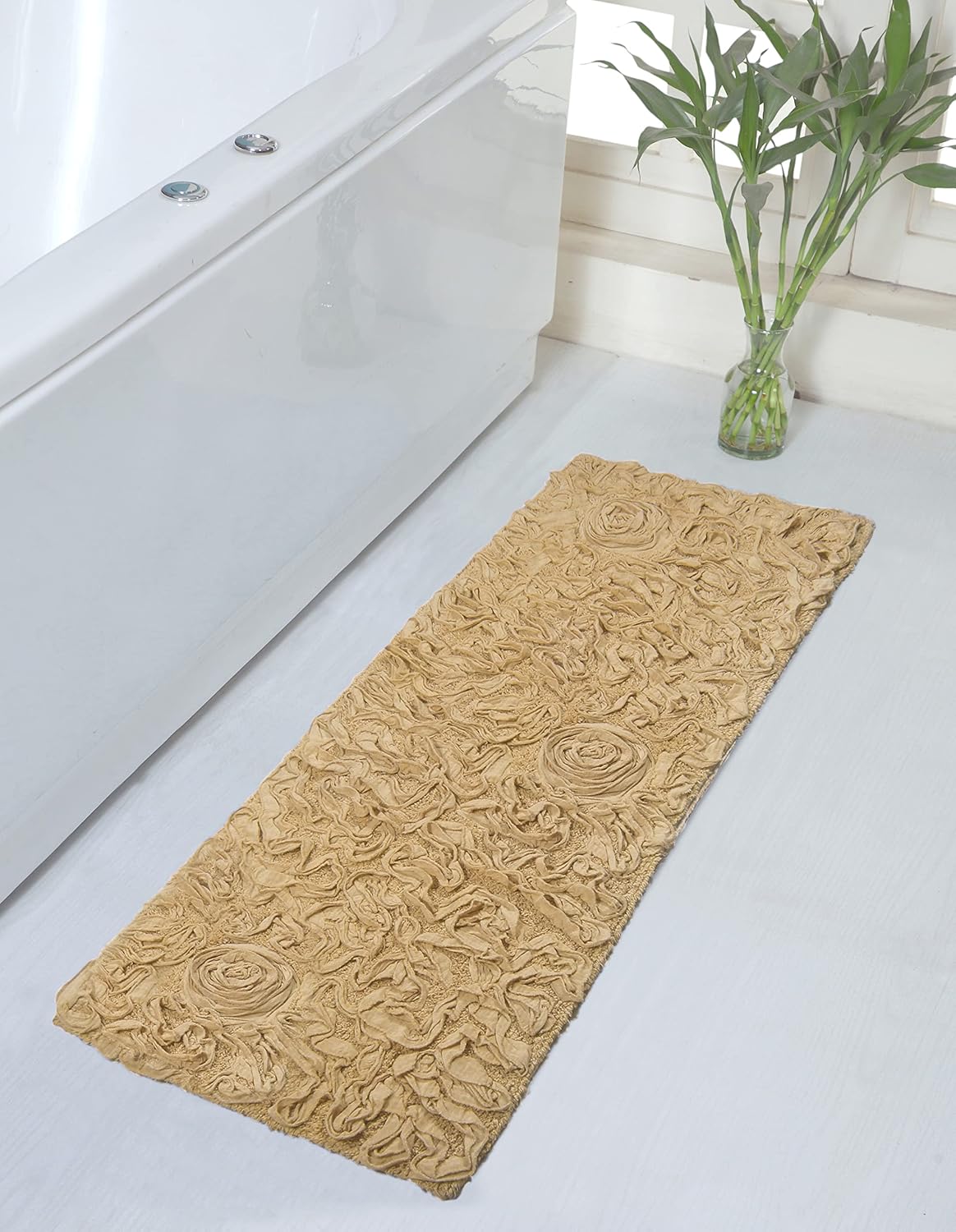 Home Weavers Bell Flower Collection 100% Cotton Tufted Bath Rugs, Extra Soft and Absorbent Bath Rugs, Non-Slip Bath Mats, Machine Washable, Bath Mats for Bathroom Floor, 24"x40" Rectangle, Linen