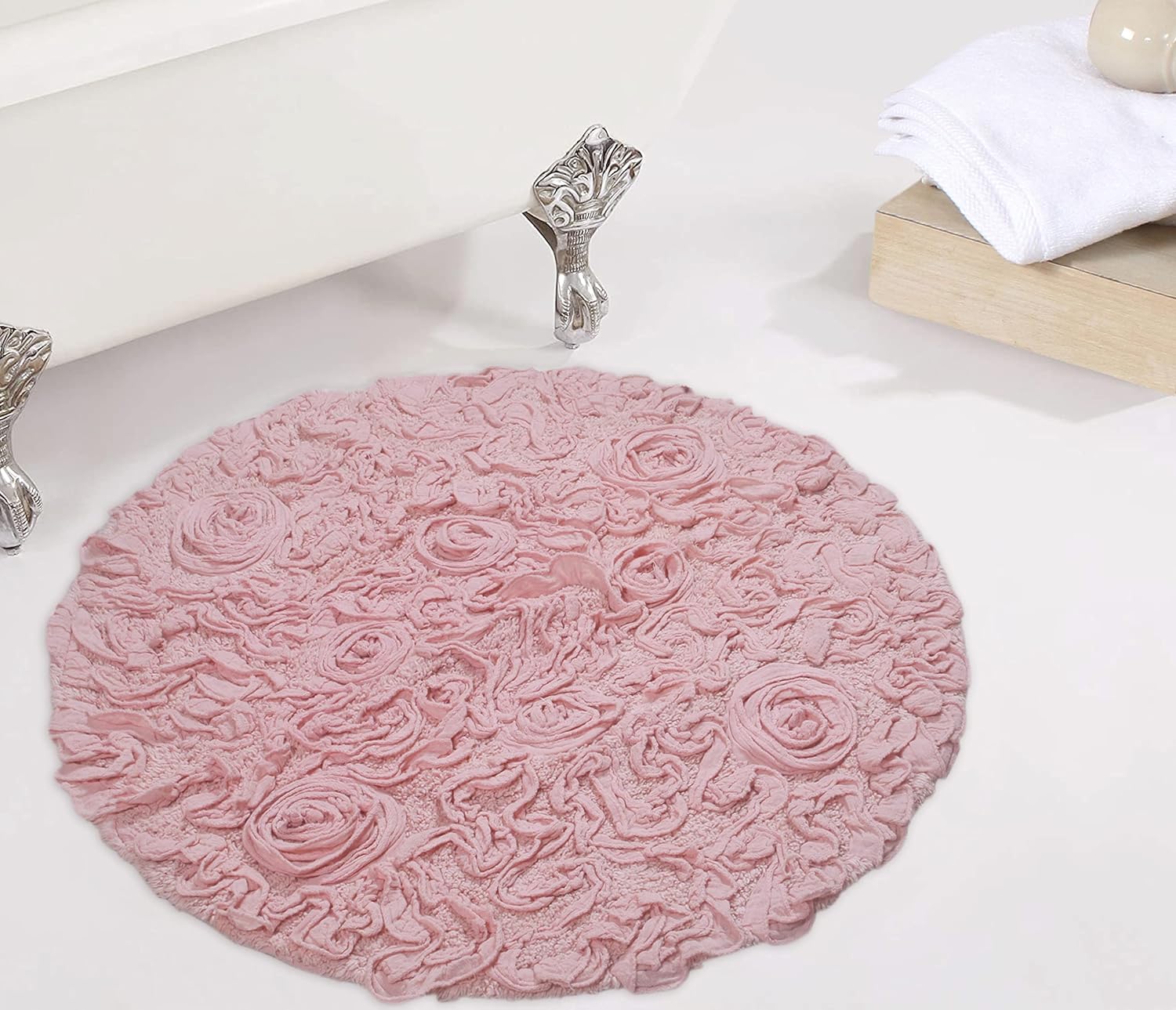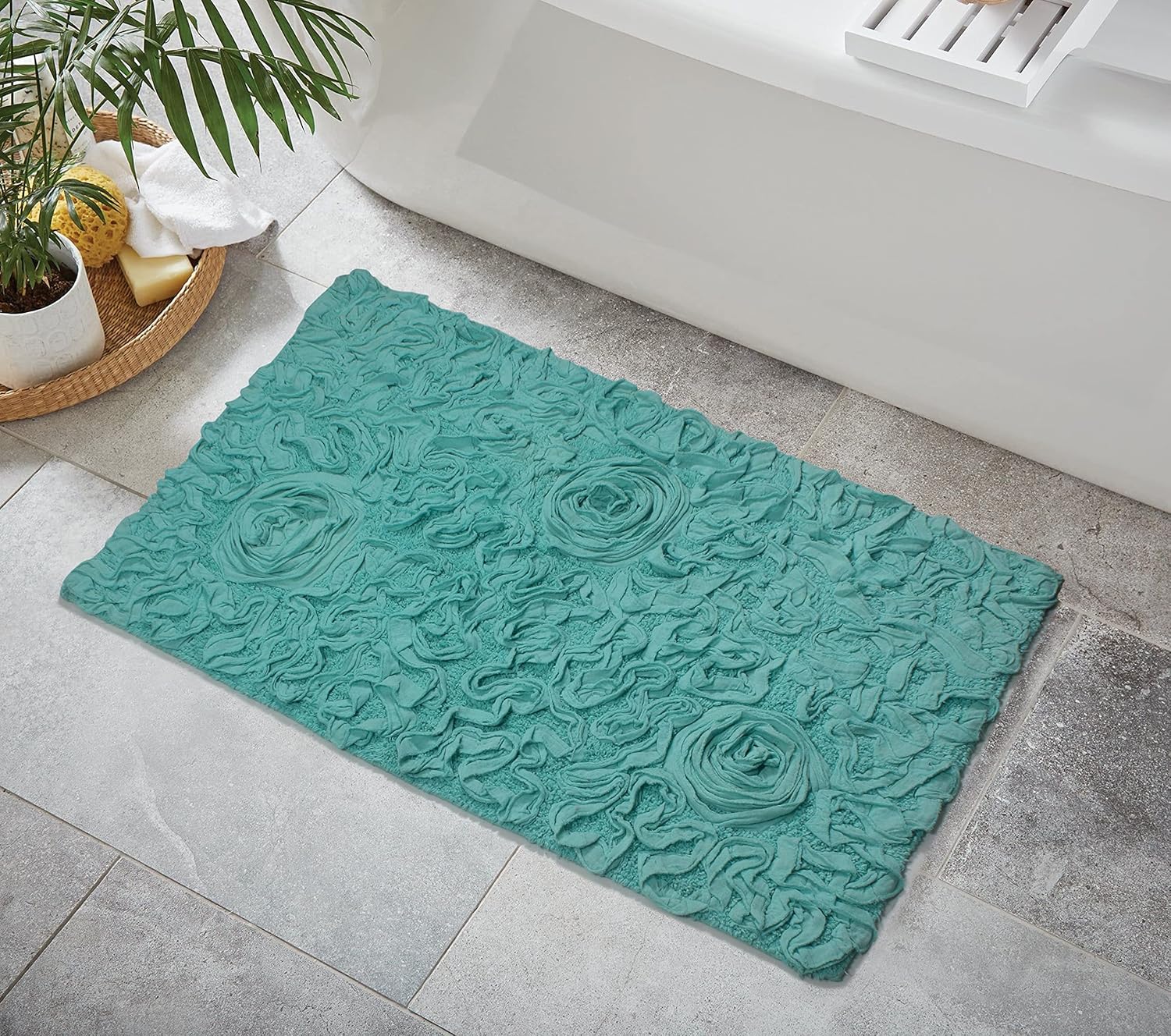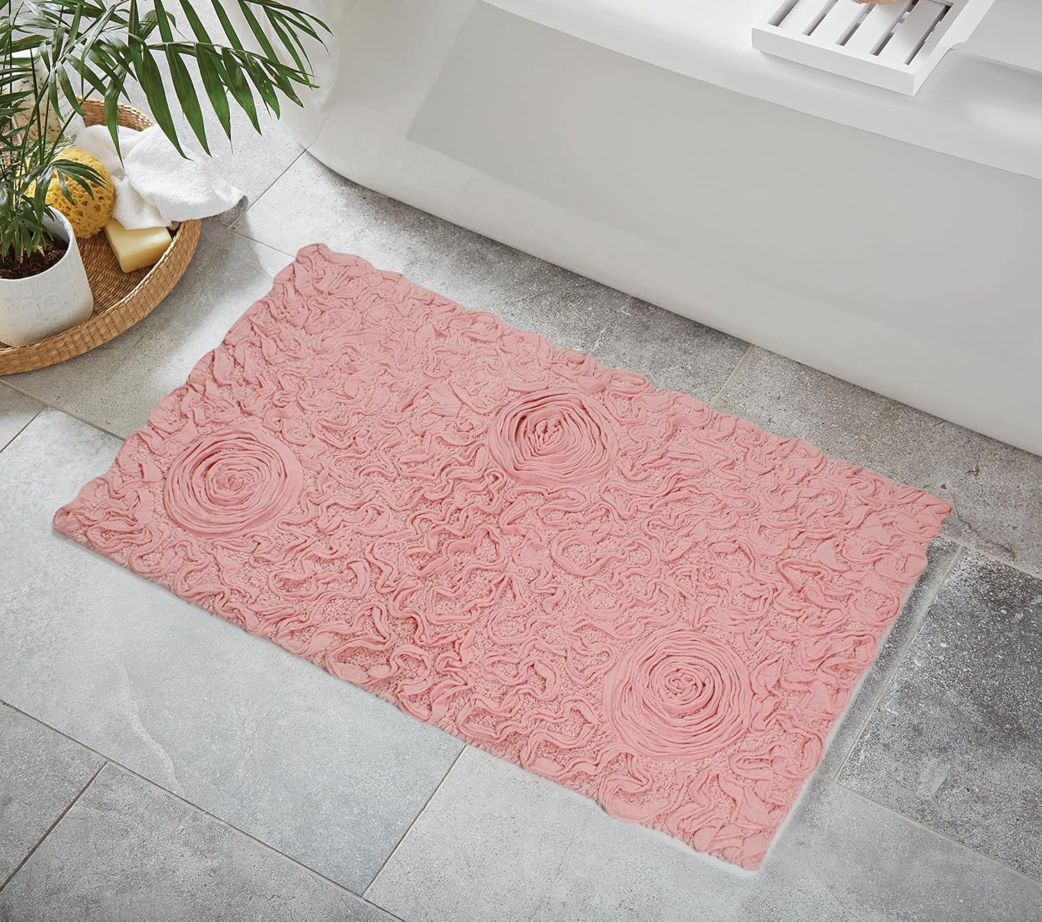 • Non-Slip Spray Latex Backing: The Bell Flower Collection bath rugs feature a non-slip spray latex backing, providing stability and safety to prevent slips and falls, making them perfect for families.