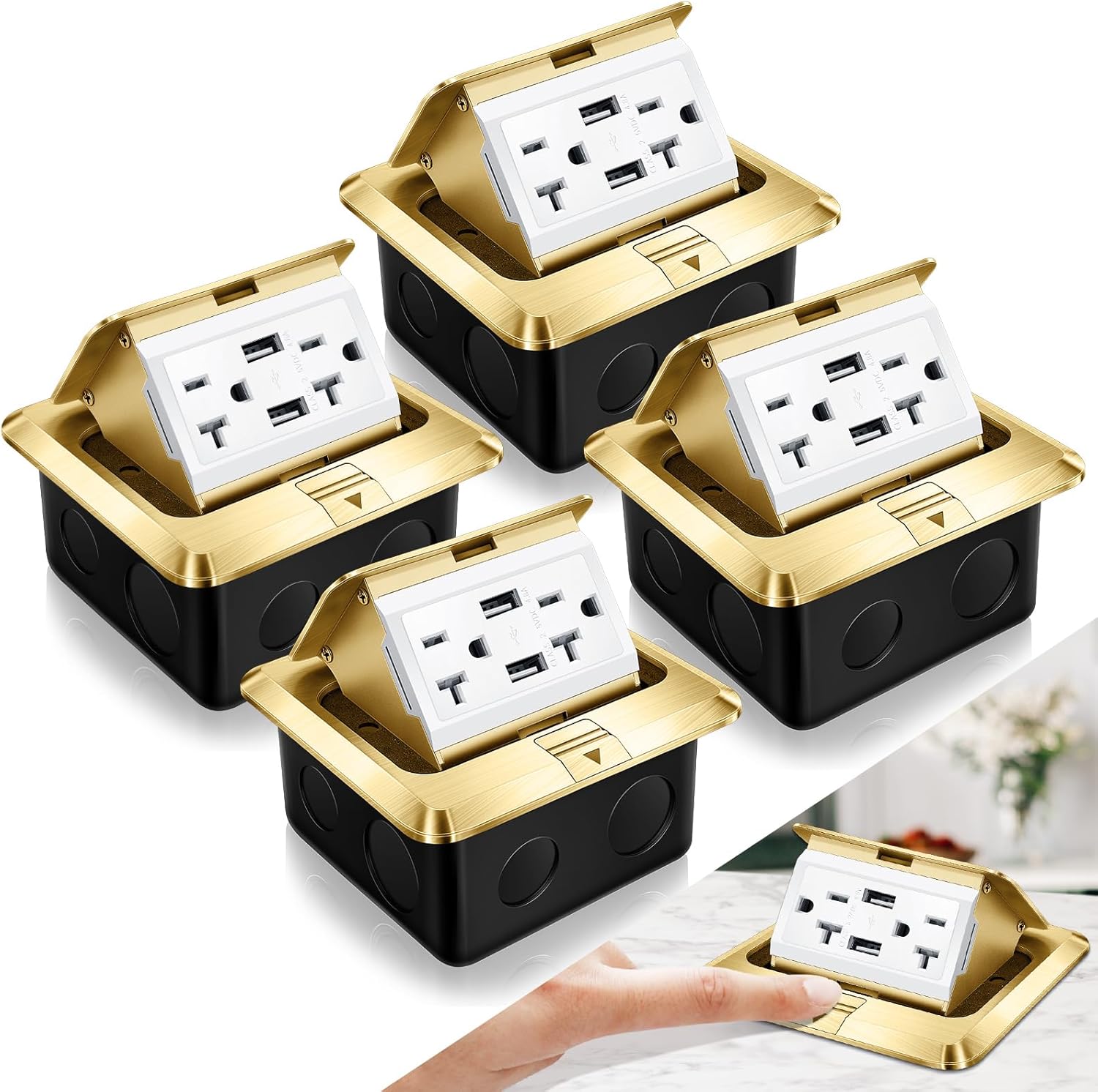• Size Information: the outdoor electric outlet box measures 10 x 10 x 5.5 cm/ 3.94 x 3.94 x 2.17 inch, the size of the square metal above the ground is 12 x 12 cm/ 4.72 x 4.72 inch, the height of the socket up state is 5.5 cm /2.17 inch, and the package comes with 1 pack of electrical outlet boxes with sealing washers, mounting screws and junction boxes, and outlet boxes have 2 20A tamper resistant receptacles and 2 4.8A USB charging ports
