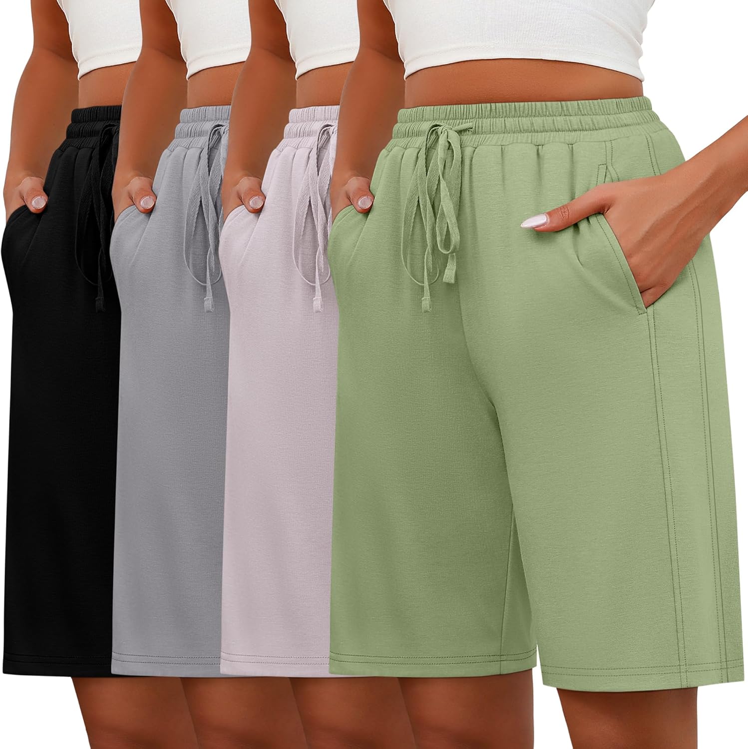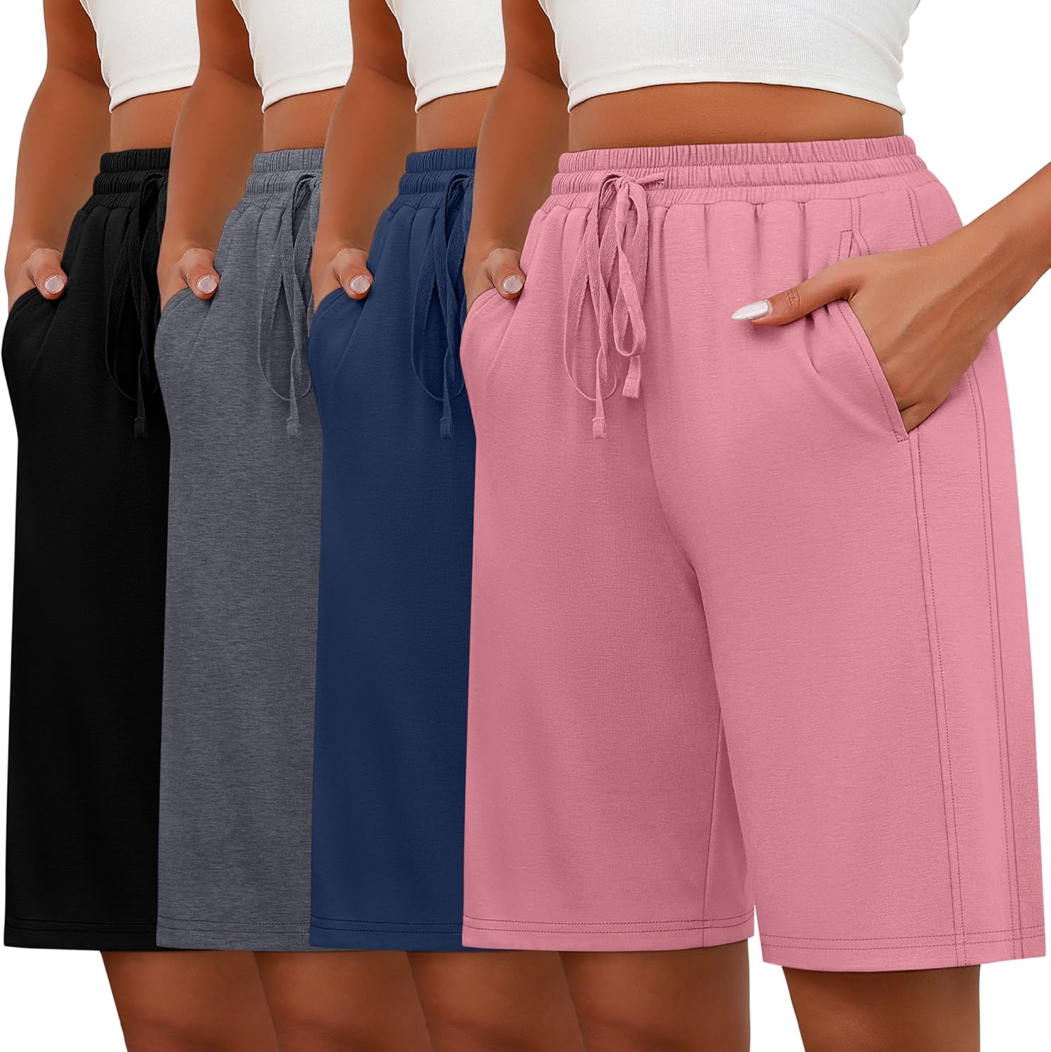 Fashion design: Knee length, elastic waist, adjustable drawstring, convenient side pockets. The version with self-cultivation can well show the figure curve of women, and at the same time reach knee length, which will show both fashionable and dignified Functional pockets: These active shorts for women come with convenient pockets, nice for storing small essentials like keys, phones, or wallets. You can keep your hands free and have your belongings within reach, making them practical for various occasions. Comfortable fabric choice: Made from quality cotton materials, these wide-leg shorts for women are soft and breathable. They feel gentle against the skin, preventing irritation even during extended wear. The fabric also has a certain amount of stretch, allowing for freedom of movement. Whether you're walking, running, or sitting, you'll feel comfortable and unrestricted Classic design: Our shorts with pockets for women are meticulously crafted to offer great comfort. The loose fit is strategically designed to give your legs and hips ample space for unrestricted movement, allowing you to perform sports, stretches, or other physical activities with ease and without any hindrance Material: 60% Polyester, 35% Cotton, 5% Spandex Package includes: 4 Pack shorts for women Notes: Manual measurement, please allow slight errors in size Due to different screen displays, the colors may vary slightly Hand wash in cold water or machine wash on a gentle cycle, hang or line dry, and do not bleach Please check the size chart before ordering