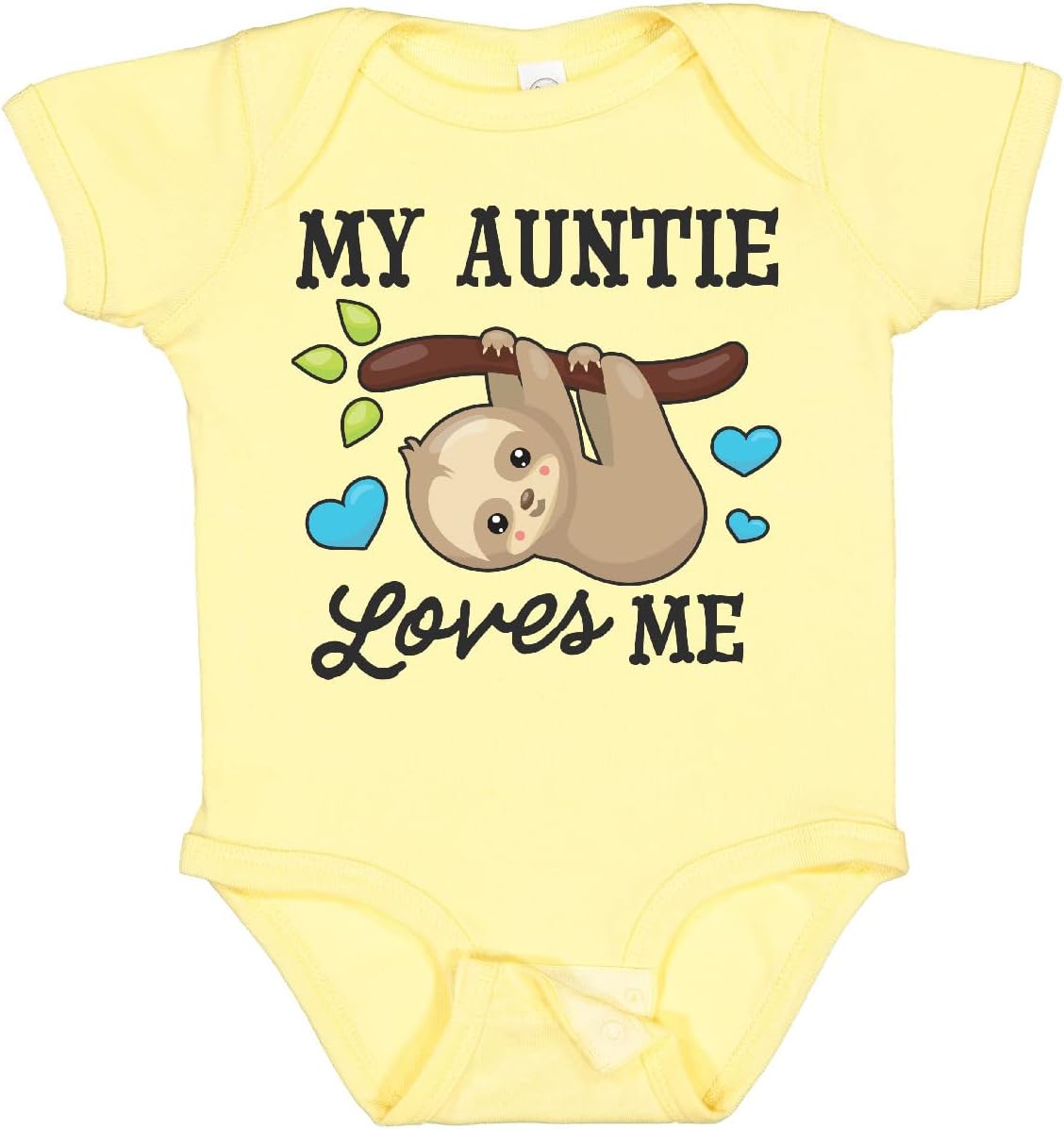 Show your niece or nephew how much you love them by giving them My Auntie Loves Me with Sloth and Hearts Baby Bodysuit, a perfect way to solidify your place as the coolest aunt ever.