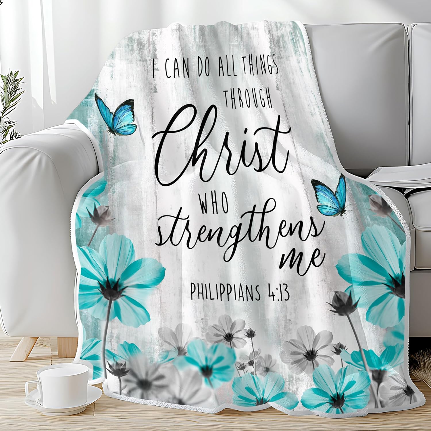 Inspirational Blanket: This flannel blanket is adorned with carefully selected Bible verses, offering a source of daily inspiration and spiritual comfort. Each verse is elegantly displayed, serving as a reminder of faith and hope.
