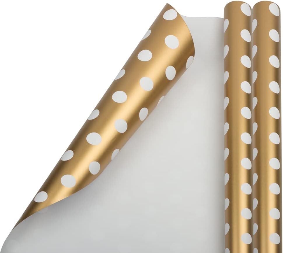JAM Paper Red Dots Kraft Paper Wrapping Paper Rolls feature a kraft brown color and a pattern of shiny metallic red polka dots! These rolls of gift wrap are sold in packs of 2 containing 25 square feet of paper per roll. This unique, high quality and festive wrapping paper is excellent for Christmas gifts, Valentine's Day gifts, birthdays, and much more! Gift recipients are sure to love the modern brown kraft color, cheerful shining appearance, and smooth texture of this wrapping paper! Impress your relatives and friends by wrapping their gifts in this fun, luxurious, versatile, and tasteful brown and red gift wrapping paper! Size: 50 Sq. Ft. | Color: Red Dots Kraft | Quantity: 2