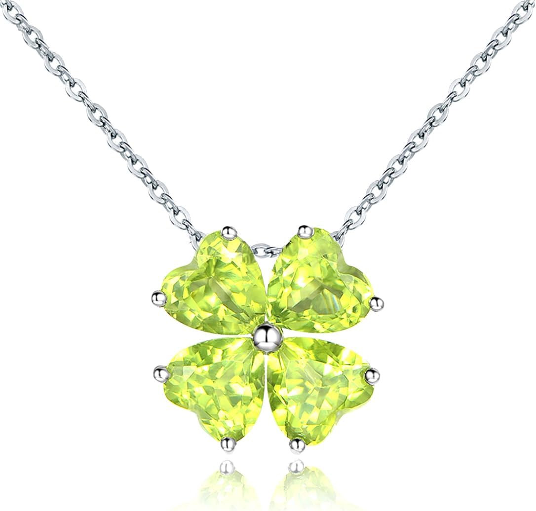 Birthstone 925 Sterling Silver Pendant Necklace for Women Lucky Four-leaf-clover design Amethyst Garnet Citrine Topaz Peridot Emerald Diamond Sapphire Ruby Fine Jewelry for Women Birthday Gift