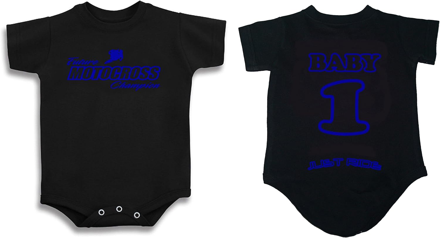 FUTURE MOTOCROSS CHAMPION BABY ONE PIECE -PERSONALIZED WITH NAME & NUMBER ON BACK - JUST RIDE LOGO ACROSS CHEEKS - SIZE CHART - NB-3 MONTH - AGE 0-3 MONTH - 5-9lbs - 16-21" LENGTH - 6 MONTH AGE 3-6 MONTH - 7-15lbs - 17-24" LENGTH - 12 MONTH AGE 6-12 MONTH - 16-22lbs - 25-28" LENGTH - 18 MONTH AGE 12-18 MONTH - 23-27lbs - 29-31" LENGTH - 24 MONTH AGE 18-24 MONTH - 28-30lbs - 32-34" LENGTH