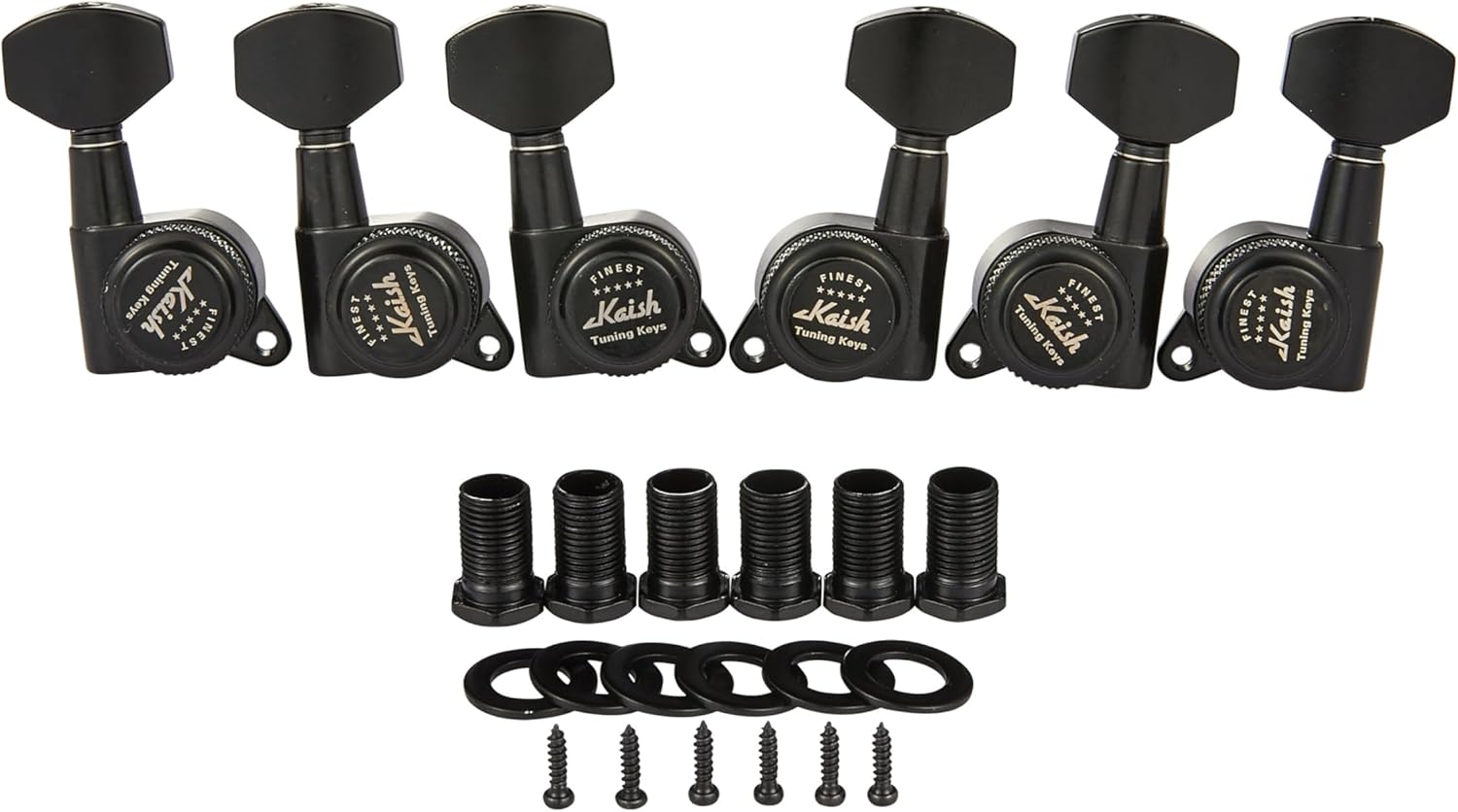 KAISH 3L3R 18:1 Locking Tuners Tuning Keys Guitar Locking Tuning Machines with Mini Contemporary Buttons for most Electric/Acoustic Guitars Gold