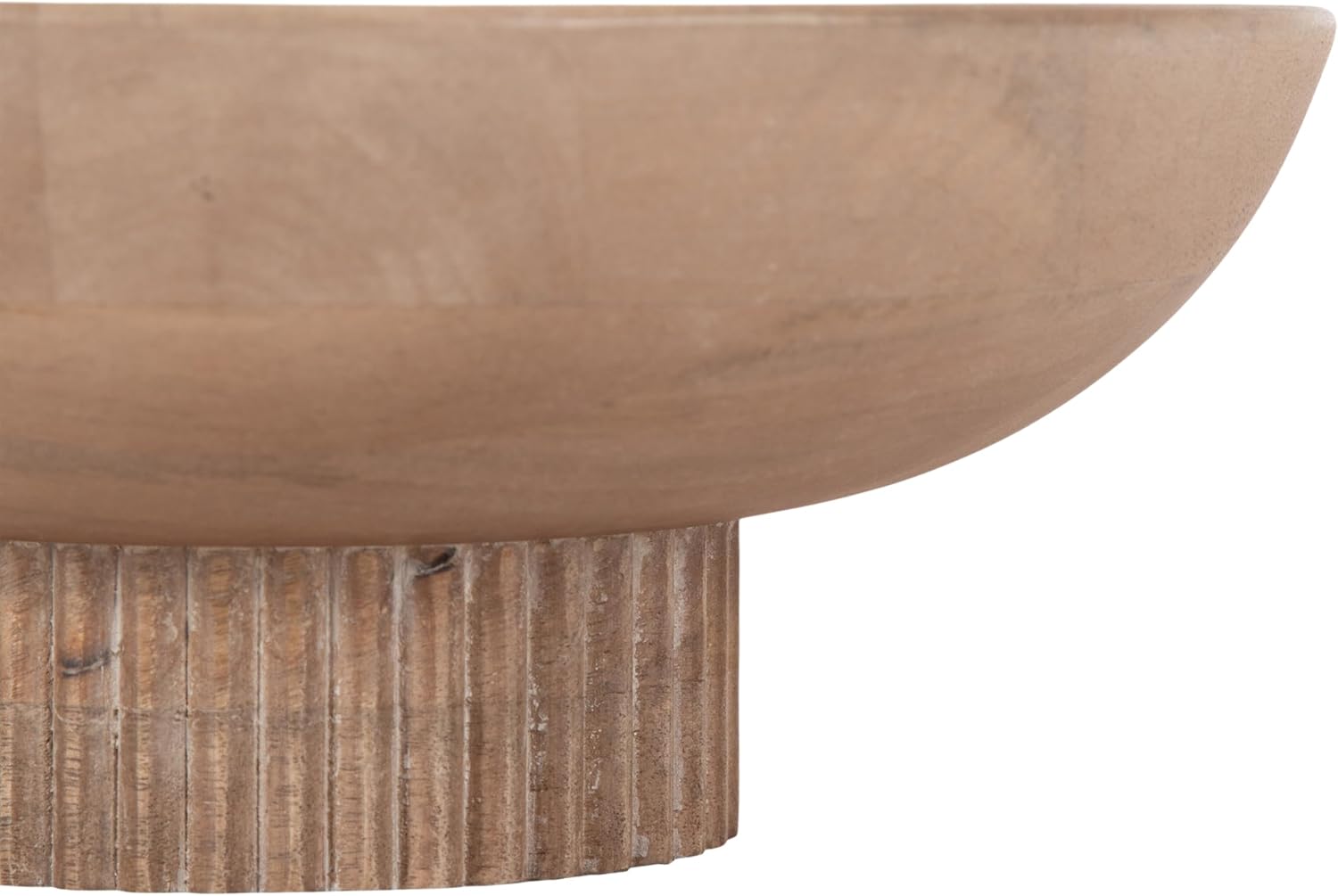 Transform your living space into a sanctuary of contemporary elegance with the Kate and Laurel Rooks decorative bowl. Its modern ribbed base adds depth and character, elevating the aesthetic appeal of your home decor. Whether showcased on your kitchen counter as a sophisticated fruit bowl or positioned on an entryway table to stylishly hold keys and essentials, this food-safe bowl's versatility knows no bounds. The raised structure not only enhances its visual allure but also offers a practical solution for organizing everyday items with ease. Embrace the perfect blend of form and function as you indulge in the timeless sophistication of this kitchen counter bowl. Meticulously crafted from solid mango wood, this exquisite bowl boasts a generous 12-inch diameter and a height of five inches, making it a striking focal point in any room. Elevate your interior design effortlessly and make a statement that resonates with understated luxury. Enhance your living space with this exquisite piece and let its beauty captivate every glance. Upgrade your home ambiance today with this stunning bowl that exudes modern charm and refined elegance.
