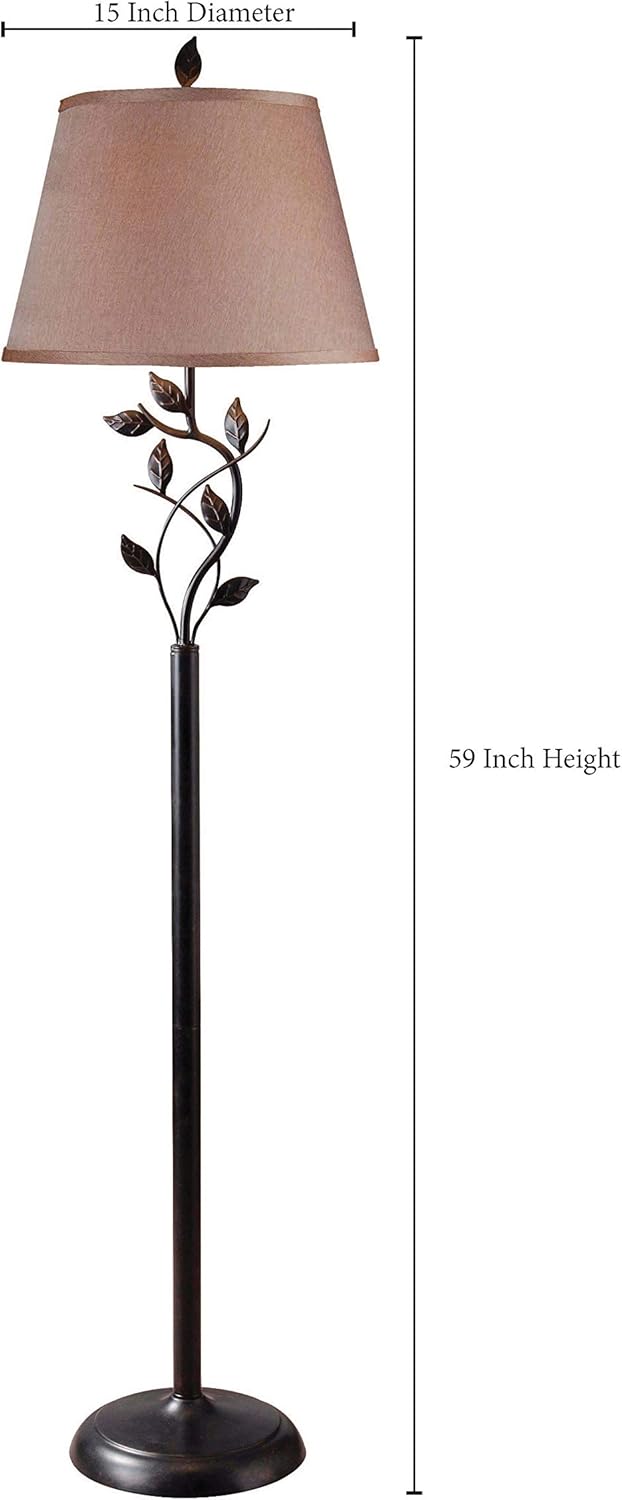 Kenroy Home Ashlen floor lamp brings a rustic charm to your home decor with this gorgeous standing lamp. This lamp will bring a natural charm to your room decor. The ambiance created by the lighting will help create a calming atmosphere, leaving you and guests mesmerized by glow illuminated through the gold tapered shade. Oil-rubbed bronze finish and the warm glow are perfect for drowning out the hustle and bustle of a long day at work.