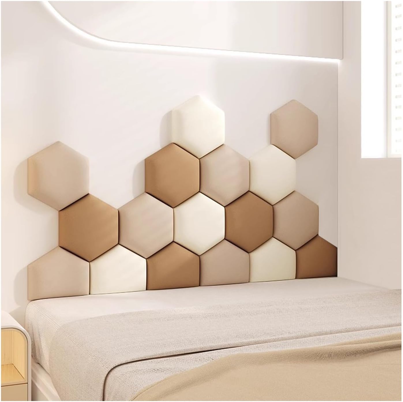 Transform your living space with our elegant hexagonal wall panels, designed to elevate the aesthetic of any room in your home. Whether you're looking to refresh your living room, create a cozy atmosphere in your bedroom, or add a playful touch to your child's room, these versatile panels offer countless design possibilities. With the ability to mix and match colors, you can achieve a personalized decorative display that reflects your unique style.Crafted from comfortable technical cloth fabric and filled with high-resilience sponge, our upholstered wall panels provide not only beauty but also comfort. The sturdy E0 grade MDF back panel ensures durability, while the overall thickness of 3 cm adds a substantial feel to your decor. Available in various sizes, including 120x70 cm, 150x87 cm, and 180x105 cm, each set contains 17 pieces to create a stunning focal point in your home.Installation is simple and straightforward. Begin by planning your design on a smooth, dry surface to ensure the panels adhere properly. Use the included self-adhesive tape for easy application. For textured walls, we recommend additional mounting adhesive for extra stability (sold separately).Please note that due to variations in lighting and screen displays, actual product colors may differ slightly. If you have any questions or specific customization requests, our team is here to assist you within 12 hours. Elevate your home decor with our stylish wall panels and enjoy the perfect blend of elegance and comfort.