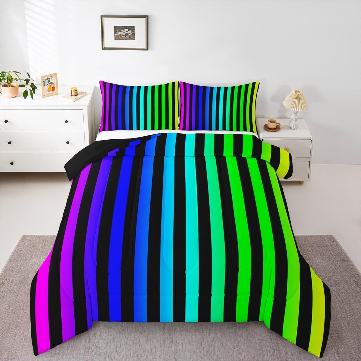 Makeover your bedrooms every season with our comforter sets; good item for your room, girls boys youth room, master bedroom Also a great decoration idea for your mom, dad, sister, brother, grandma, wife, husband, daughter, son and all other beloved Size Information:1 Toddler size comforter 42" X 58" and 1 pillowcase 30" X 20"1 Twin size comforter 68" X 90" and 1 pillowcase 30" X 20"1 Full size comforter 79" X 91" and 2 pillowcases 30" X 20"1 Queen size comforter 90" X 90" and 2 pillowcases 30" X 20"1 King size comforter 104" X 90" and 2 pillowcases 36" X 20"Useful and practical: A practical product for homes, dorm rooms, hotels, guest rooms. Comfortable to use for being polyester which is soft and breathable Unique design:Vivid colors and clear printed with digital printing. These unique designs match well with various color of your rugs, curtains, headboard, furniture, and all other decor accessories Characteristic:As manufacturers of digital printed home textiles, we follow current trends and bring you new home fashion Either a comforter to your family or friend, relative or boyfriend girlfriend, or to yourself, the item should be interesting and authentic Note:The comforter and pillow cases are printed on the front side only, the back of them are white colored