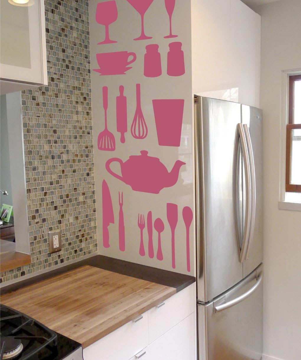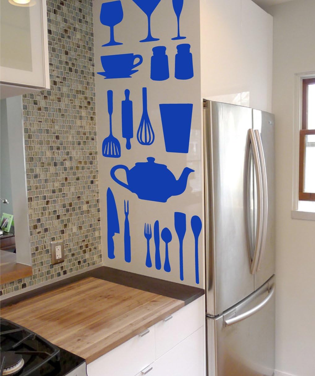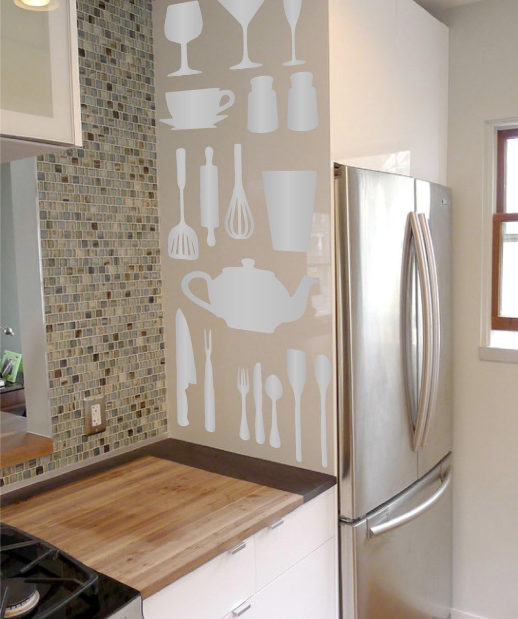 | Included Components | Kitchen Cooking Utensil Vinyl Decal Stickers - DIY Removable Decor - Spatulas Plates Cups Bowls Wisks Set (Black, 37x29 inches) |