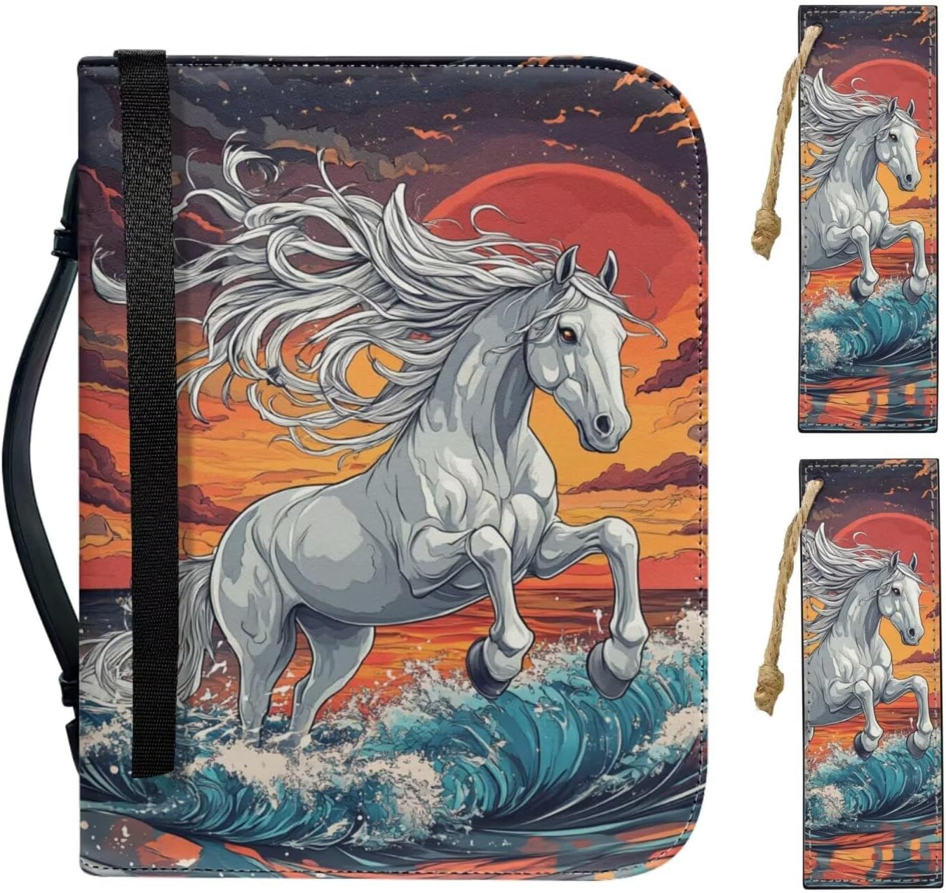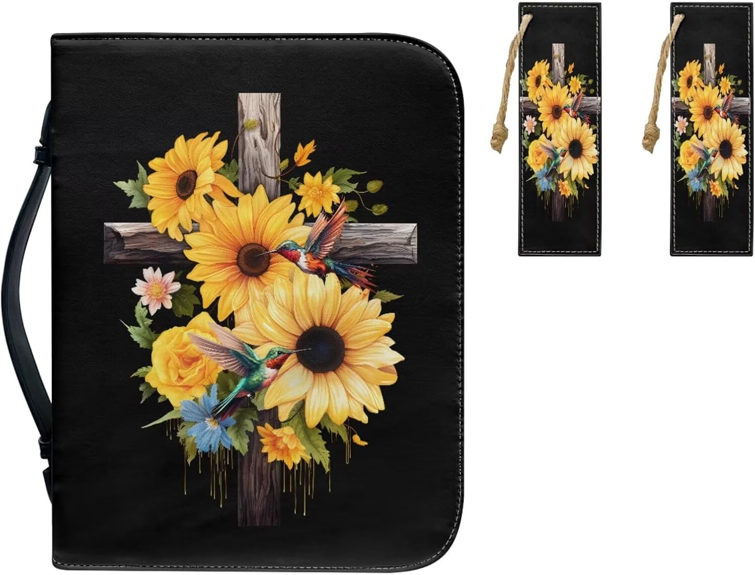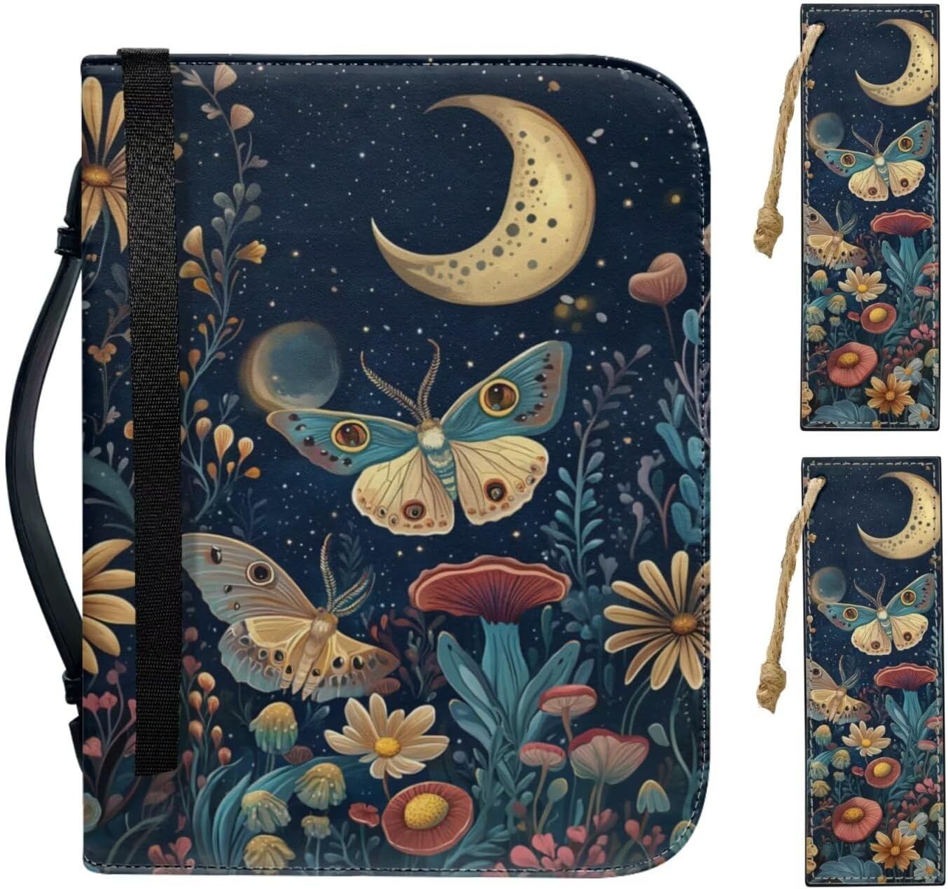 3 Pieces Set - Bible Covers with 2 pcs Matched Leather Bookmark Material - Bible covers is well made by sturdy waterproof leather, with durable metal zippers and durable handle. Size - Bible Bag are available in 4 sizes, M: 5.3x8.2x1.3in; L: 6x9.2x1.6in; XL: 7x10.2x1.9in; 2XL: 8x11x2.1in. Suitable for different sizes of bibles or other books. Please measure the size of your bible before purchasing. Please note that the above dimensions are for the bible bag, which needs to be 1 inch longer in length and 0.3 inch longer in width than the Bible. It is recommended that you purchase a Bible Case that is larger than your own Bible. Besides the main compartment, have a front zipper pocket and the interior has 4 pockets, 4 pen slots and 1 bookmark belt. A variety of patterns, colors for your choice, rose, starry sky, rainbow, fruits, butterflies, wolf, skull, dragonfly, sea turtle, mushroom, tribal, flowers ect. Can as perfect Birthday gifts, Mother's Day gift, Father's Day gift, Christmas gifts, Graduate gifts, Valentine's Day present, Graduate gift, Thanksgiving gift, Easter gift, Halloween gift etc, perfect gift giving to your friend or loved one. Notices: 1. The sizes have been shown in the detailed pictures, please read carefully before purchase. 2. The color difference between the product and the picture is normal due to the difference of shooting light or the screen display. 3. The dimensions are measured manually with deviation of 1-3mm. 4. If you are not satisfied with product , please feel free to contact us.