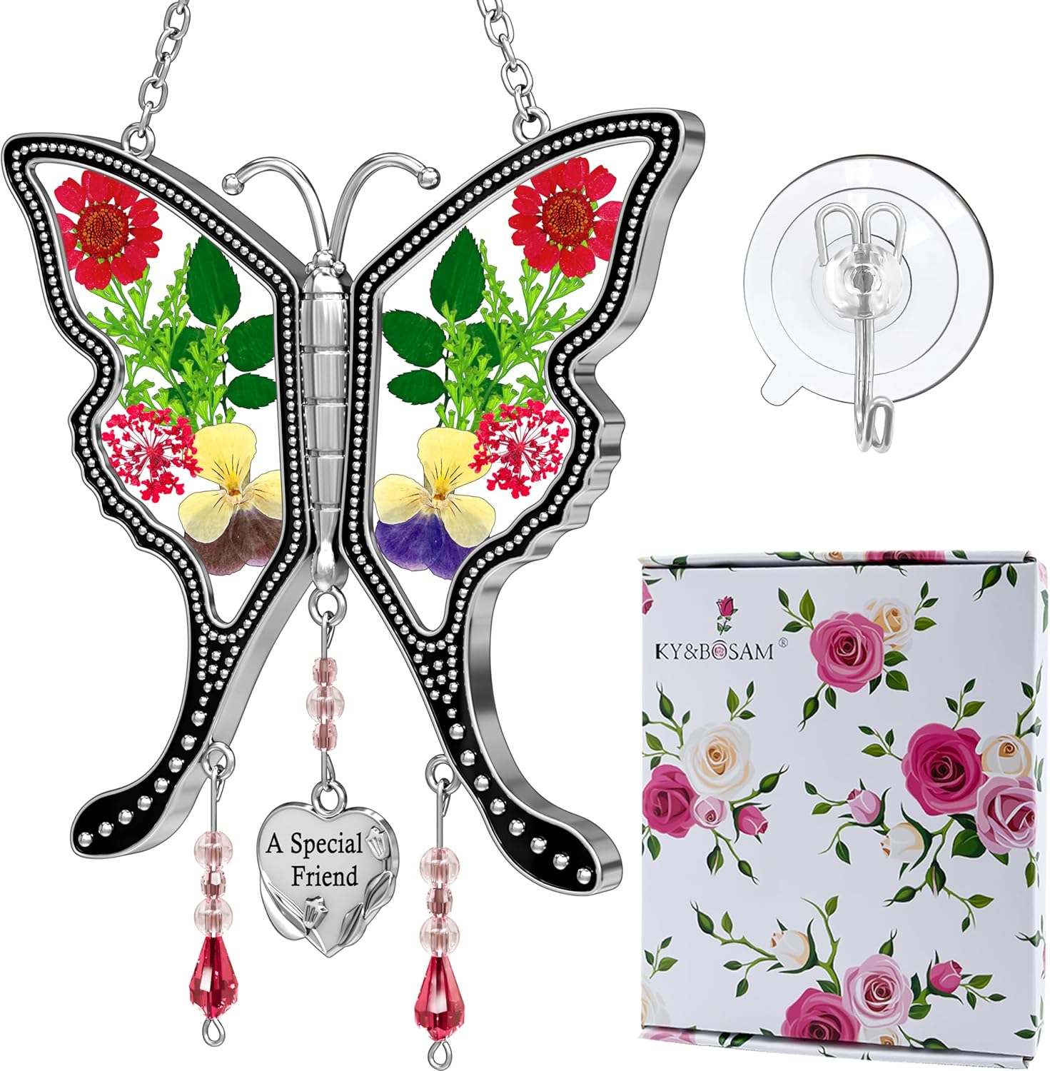 • [New Design Nana gifts Grandma Gift Mom Gifts Sister gifts Butterfly Glass Suncatcher] Healthy & Quality Material -- This New Butterfly suncatcher use lead-free sterling silver & zinc alloy. Quality materials make our products elaborately and the entire production process is all handmade. Our size is larger, approx. 4.80 "x 4.60" Inch. Approx. 8.00" when hangings.
