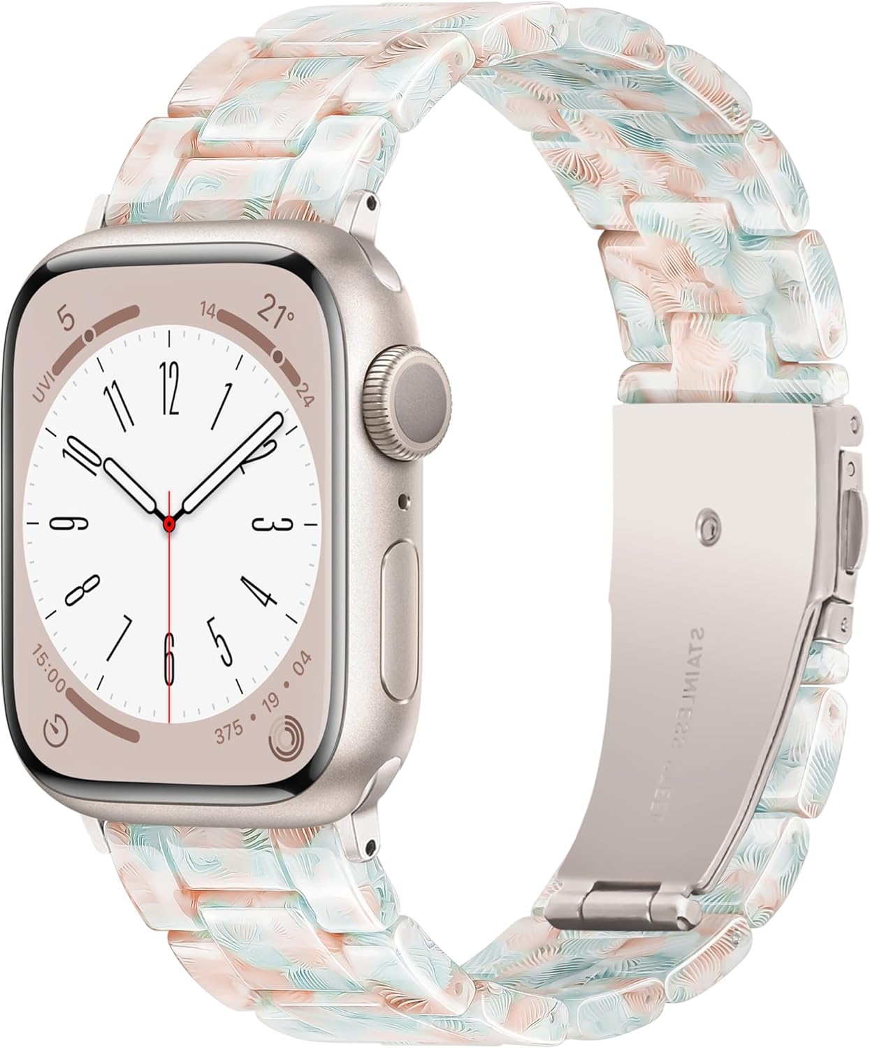 【Lightweight and Comfortable】It weighs only 1.05oz. Lighter than stainless steel metal band. The extremely light design makes it breathable and flexible to wear, and it’s comfortable to wear all day. Each piece of resin is slowly polished by the experienced artificers. So each piece of link can perfectly fit the skin. You will admire every detail of it.