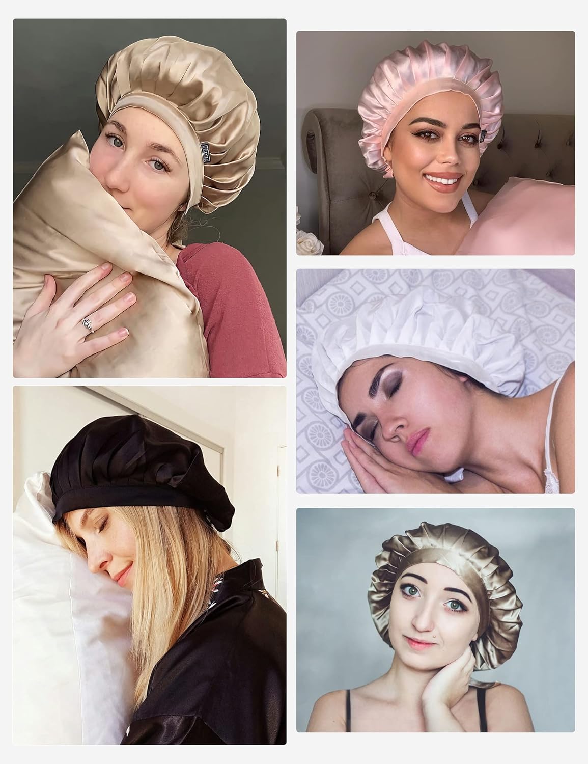 | Style Name | Pure Silk Hair Tie 1pc & Silk Sleep Cap 1pc, Coffee |