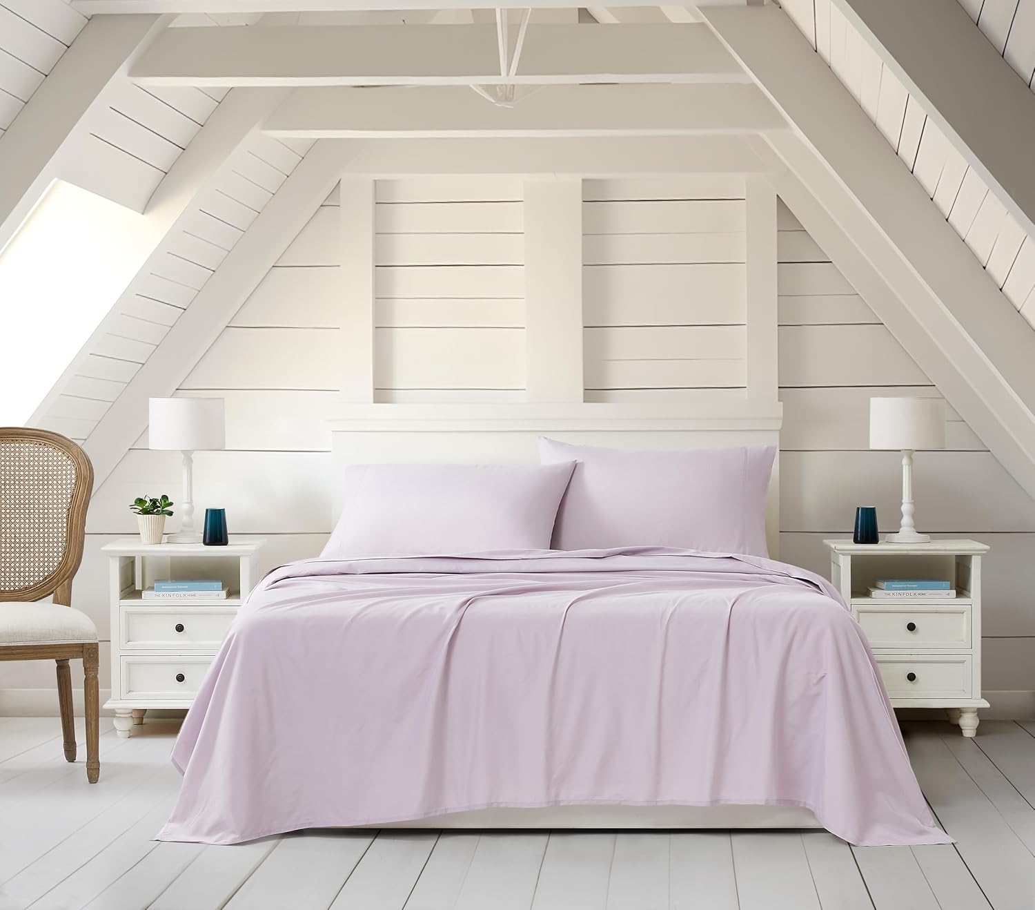 The Linen Closet Cotton Blend 4-Piece Sheet Set is soft, durable, and wrinkle-resistant. Brushed for softness, these cotton/poly sheets are ideal for vacation homes, college dorms, and guest rooms. Each set includes a fully-elasticized fitted sheet with True Grip technology, a flat sheet and two standard-size pillowcases, and these easy-care sheets soften more and more after each wash. Available in a full range of sizes and an assortment of solid colors, the Linen Closet Cotton Blend 4-Piece Sheet Set is both high-performing and affordable.