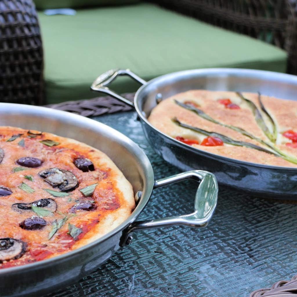 ANYWARE by Little Griddle is the first of its kind - exceptional indoor / outdoor cookware hand-crafted in the USA. ANYWARE is made from clad metal: seven layers of stainless steel and aluminum bonded together for exceptional heat control and durability on any cooking surface - outdoors, or in your kitchen. This generous 11.5" fry pan features a stainless steel cooking surface for even browning and easy cleanup, an interior core composed of five layers of aluminum for precise, rapid heat adjustment, and an induction-capable stainless steel bottom. This pan features two "helper" handles for easy movement, and it's double-handle design eliminates longer "stick" handles, allowing it to fit under the hood of almost any outdoor gas or charcoal grill, including all popular ceramic kamado grills! ANYWARE is rated to 500°F for use over virtually any cooking surface, including gas ranges, gas and charcoal grills, and induction cooktops. ANYWARE may be used in the oven up to its maximum heat rating. Over the past twenty years our customers have come to know and love Little Griddle's lifetime-guaranteed stainless steel outdoor griddles, and asked us many times us for a product that can be used "ANYWARE" - on your stove AND on your grill. We heard you, and this pan is our answer. Today, as we begin our 20th year of making summer taste better, we are so proud to introduce this new cookware - almost as proud as you will be to own it!