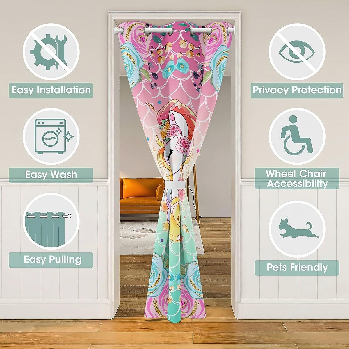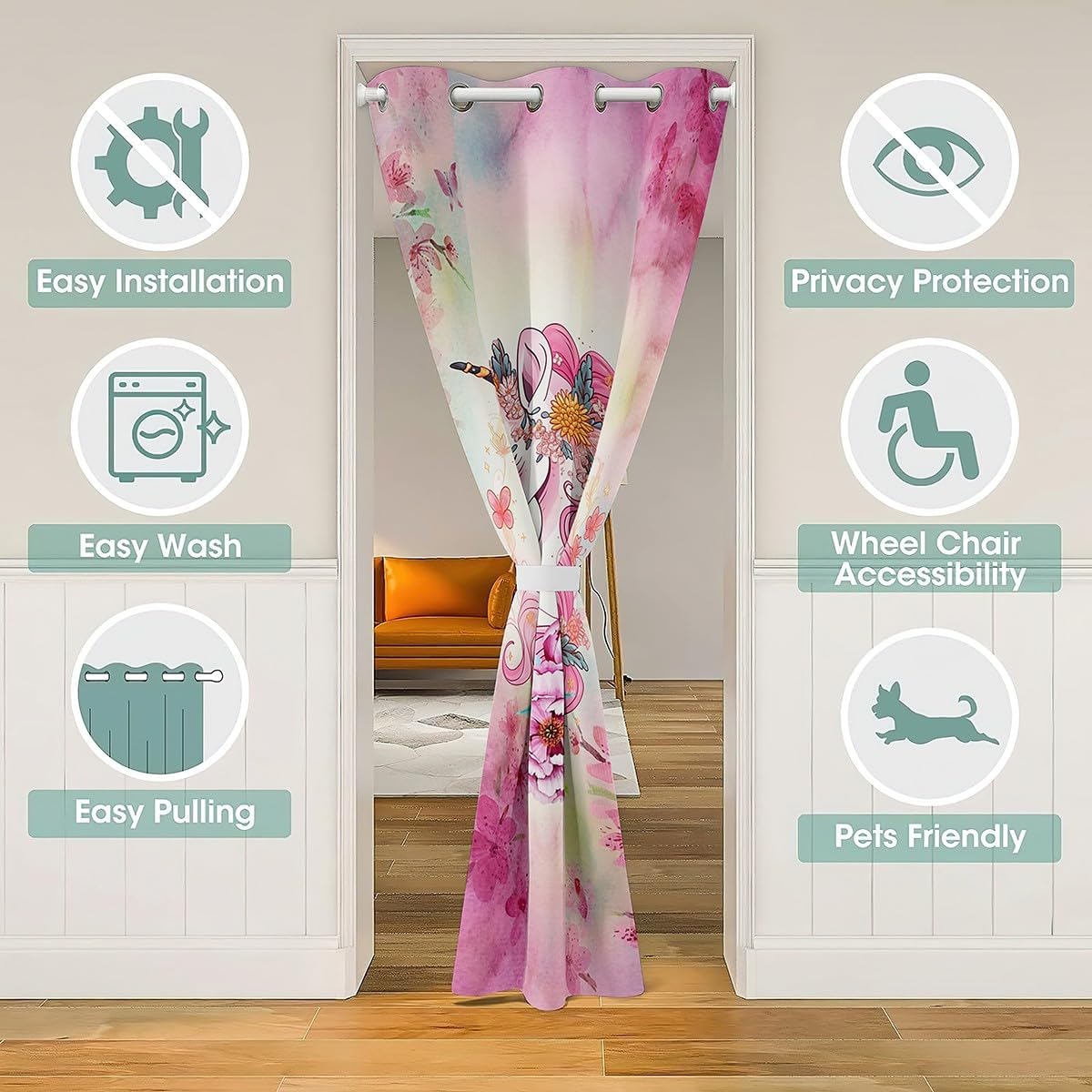 Package Include: 1 Door Panel 100% polyester, soft, block out 30% to 50% sunlight Size Information: 4 Sizes for you to choose 34W x 80L inch 42W x 80L inch 52W x 80L inch 60W x 80L inch Occasion: Used us door curtain, wall tapestry, window drapes. Suitable for home, office, restaurant, dinning area, windows, kitchen, toilet, bathroom, bedroom and etc. Washing instructions: Machine washable in gentle cycle and cold water, do not bleach. Warm iron and tumble dry at low temperatures Warm Tips: Not blackout curtains or light blocking curtains or energy saving curtains. Patterns are printed on one side. Manual measurement, please allow an error of 1 to 3cm.