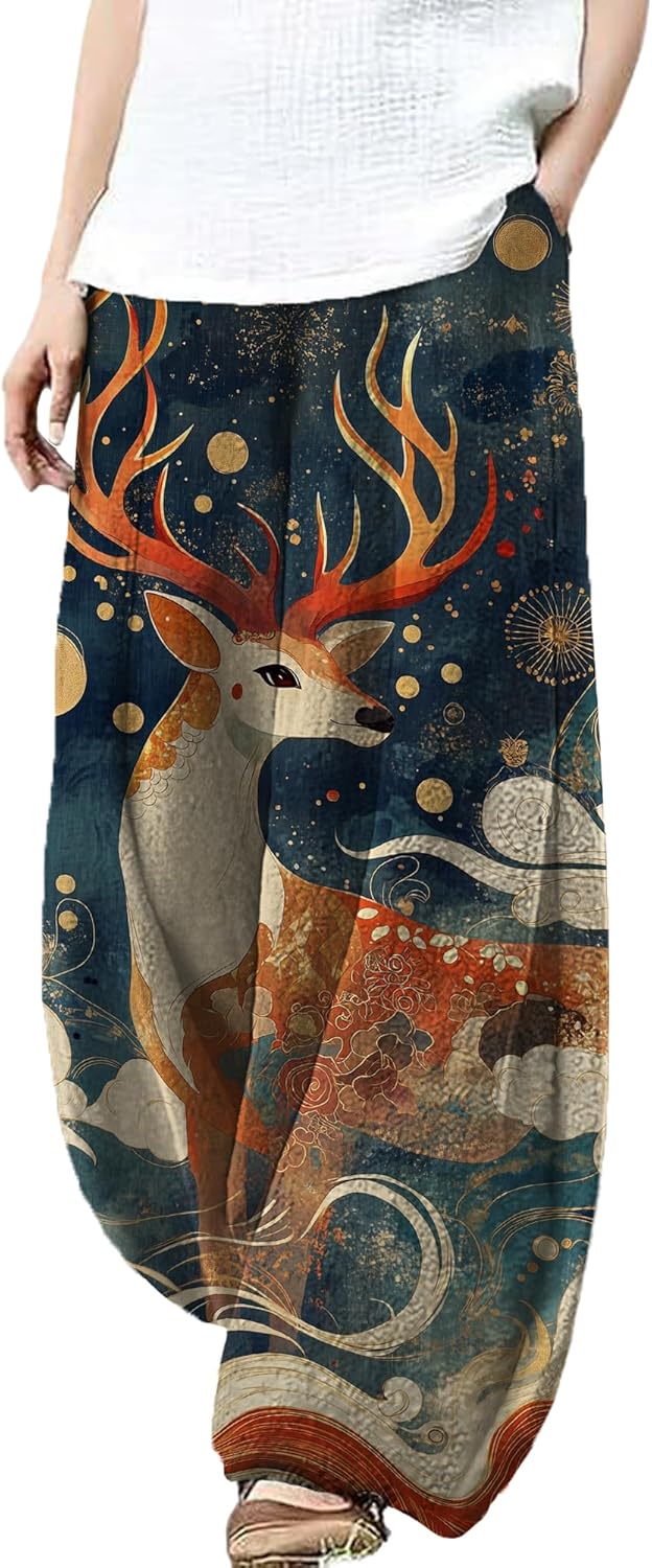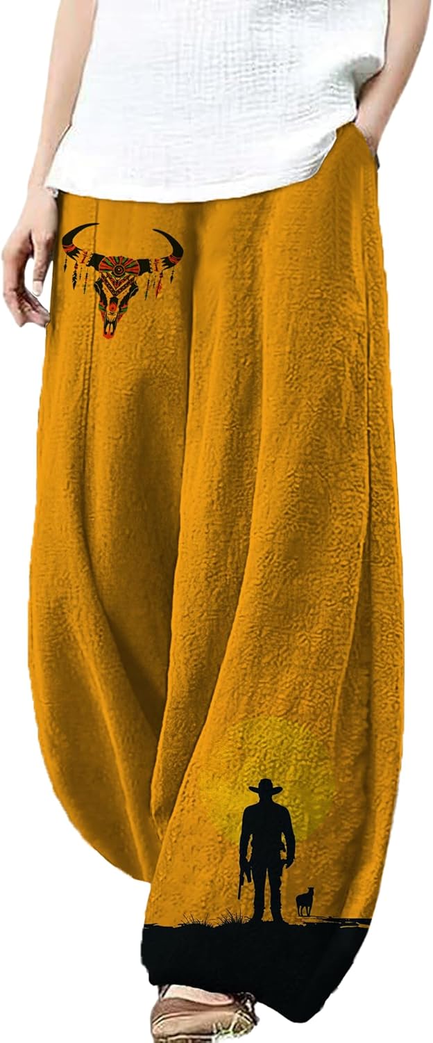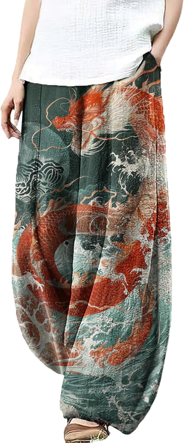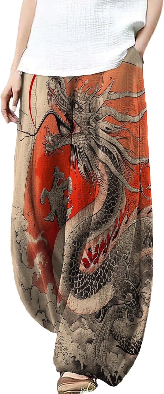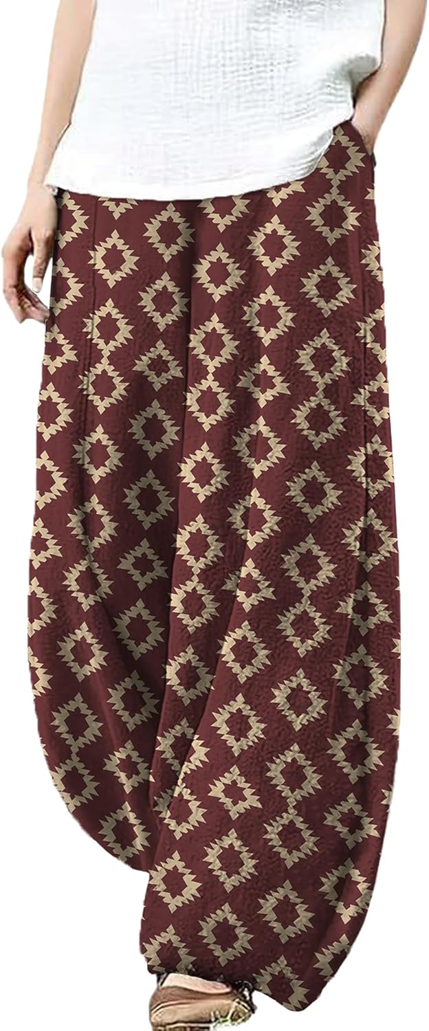MARSVOVO Palazzo Pants for Women Dressy Elastic Waist Streetwear Hippie Pants Plus Size Baggy Casual Trendy Fall Harem Wide Leg Pants with Side Pockets