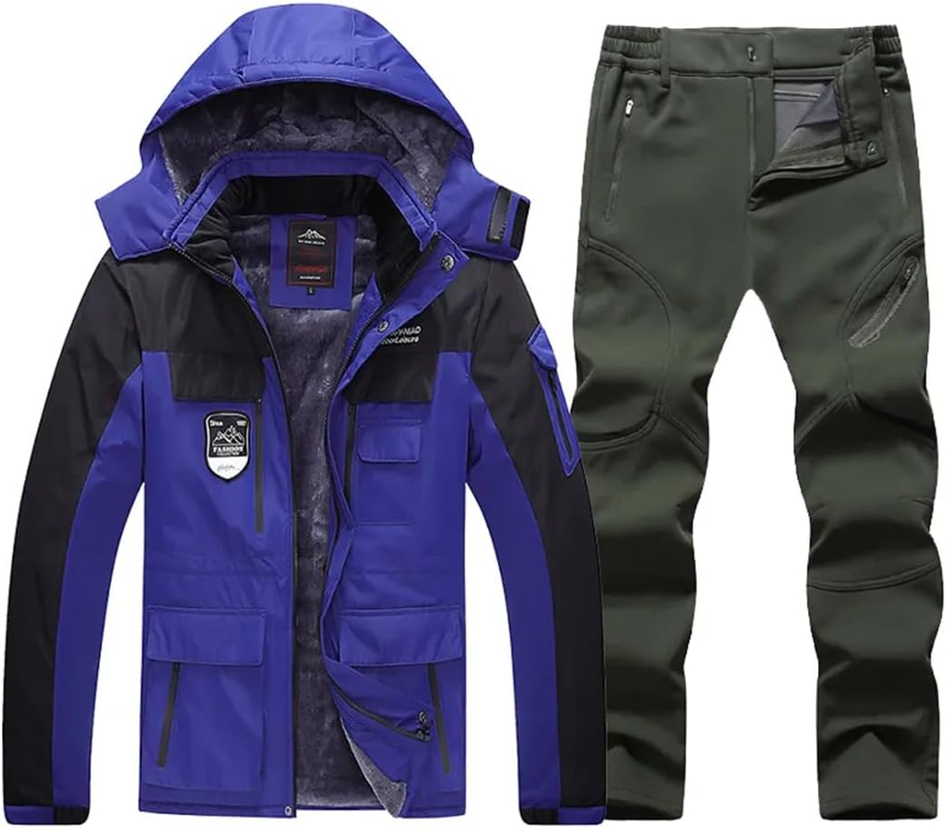 ❁❁Winter Windproof Waterproof Breathable Ski Suit for Men and Women♥♥Product DescriptionProduct name: Ski suit suit , Sling Ski PantsMaterial: 100% Cotton polyester,Space cottonFunction: Waterproof, Winproof, Breathable, Wear resistance and Warmth, Anti-static Inner Pocket Design:Two side Pockets + Cuff PocketWaterproof soft shell:warm fleece lining, removable windscreen, adjustable cuffs, warm and weatherproof, protect you from Resistant to cold rain and snow weatherApplicable Scenarios: Cycling, Ice and Snow, Extreme Challenges, Hiking, Camping, Skiing , hiking, mountaineering, hunting, fishing, camping, snowboarding, snow sports and other winter outdoor activities♥♥Jacket♥♥The professional coated fabric that makes the jacket waterproof and wear resisting.Lining and durable fabric which guarantees the best heat retention.Adjustable cuffs, stretchable glove with thumb hole help seal in warmth. Inside windproof snap powder skirt, internal drawcord hem, detachable and adjustable storm hood help to keep wind out. Wear resisting soft shell is highly wind resistant.Keep you dry and give you a more comfortable experience when you are outside♥♥Pant♥♥The pant is uniquely made with lightweight flexible materials that stretch in all directions.The multi-layered construction of the Insulated Snow Pant features advanced lightweight insulation with heat-trapping micro chambers that help keep you warmer than traditional insulation. Less bulk and more flexibility,keeps you warm without weighing you down.Attention to detail and quality include ankle, scuff and hem guards❀❀Size notes: smaller than standard, choose bigger size. Please refer to our size chart and choose the appropriate size before ordering