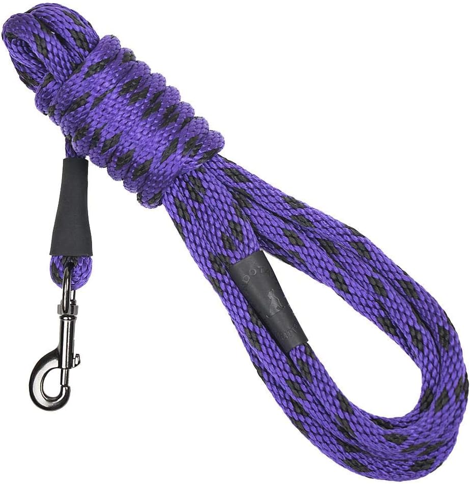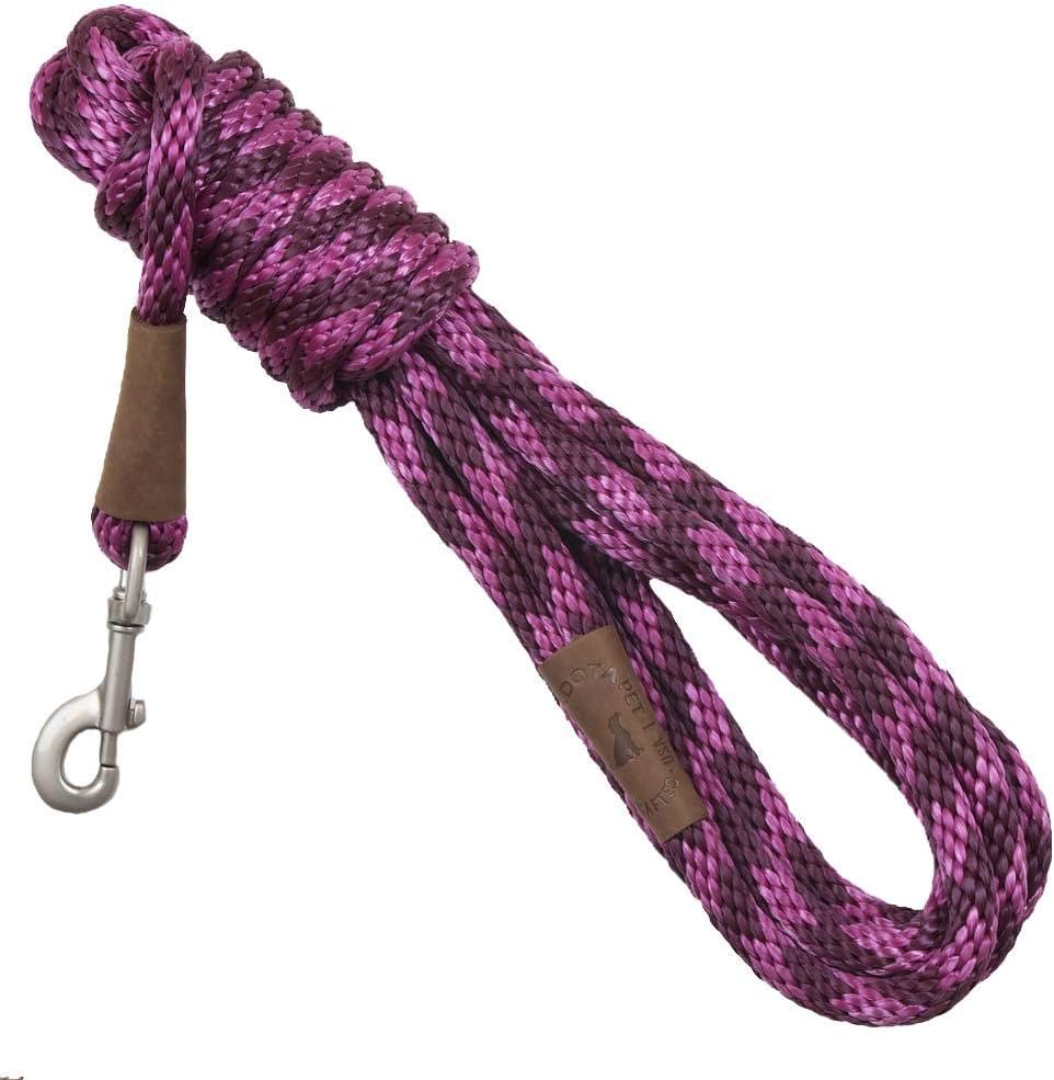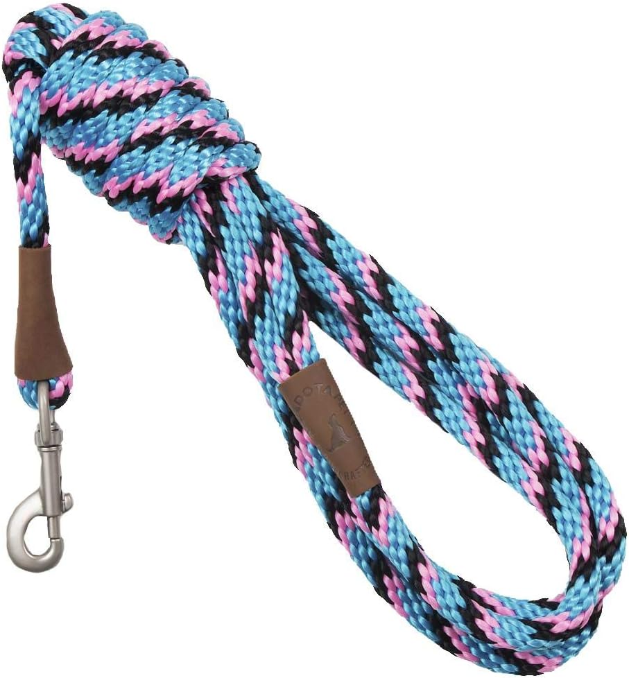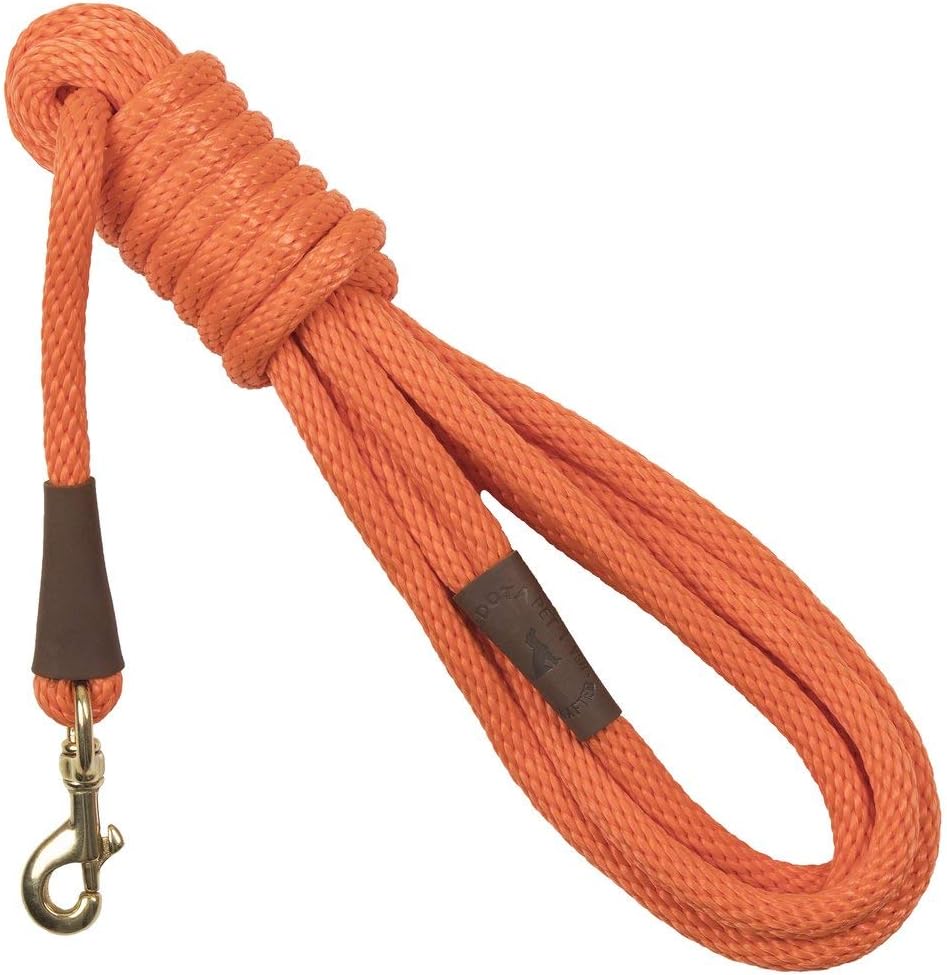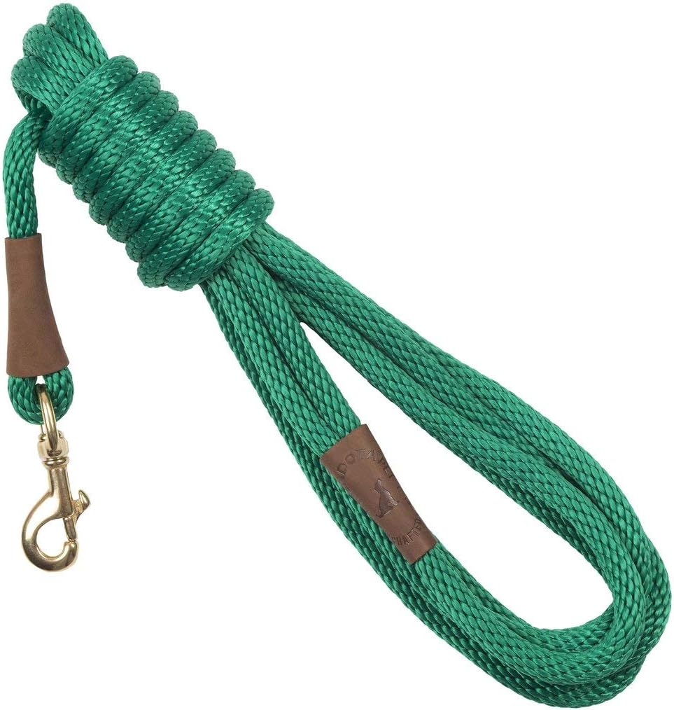 Hand crafted in the USA - this traditional snap leash is great for training, walking or exercising! made of waterproof, colorfast, durable multi-filament Polypropylene solid core roping features all brass hardware and oil tanned leather splices. Soft on the hands with it’s “broken in feel” right from the start. Matches our 1” double braid and 9/16” double braid Jr. Collars perfectly.