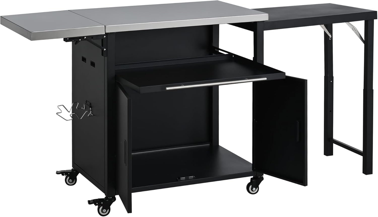 🌟 Why You’ll Love It"The perfect sous-chef for my outdoor kitchen!" Stop juggling plates and utensils while trying to manage the grill. This cart acts as your mobile command center. Use the stainless steel top for prep, the drawer for tools, the cabinet for dry goods, and the side rack for trash. When the party is over, fold it down and roll it away. It’s the ultimate space-saver for small patios and a luxury upgrade for large backyards.