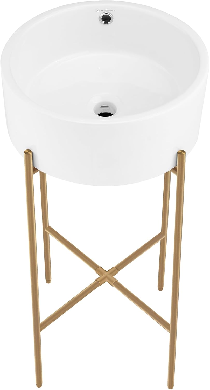The Monaco console sink is a complimentary selection for any bathroom. The two-piece, freestanding design features a matte black stand with a circular basin and built-in singular faucet hole that offers a unique take on a classic style. Crafted from durable ceramic, the Monaco will not only look beautiful, but will remain so for many years.