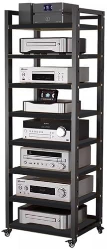 Struggling with clutter in your living space? Our versatile audio stand is the ultimate solution for organizing your audio-visual equipment and TV accessories. Designed to enhance your home theatre experience, this audio stand can also serve as a stylish side shelf in your office, family room, or bedroom. Crafted from durable steel and wood, this audio cabinet features three spacious tiers, each capable of supporting up to 50kg (100lbs). The adjustable spacing of 5cm (2in) between layers allows for customized storage to accommodate various components like DVD players, game consoles, and TV boxes. Key features include: - A compact design that minimizes clutter while maximizing storage. - Four lockable universal wheels for effortless mobility, making it easy to reposition as needed. - Compartmentalized storage that keeps your items neatly sorted and accessible. - Simple maintenance; just wipe with a damp cloth to keep it looking pristine. - Robust construction ensures it can hold a wide range of audio and video equipment securely. The audio stand is an ideal addition to any modern home, offering effective and rational use of space without compromising on style. Enjoy the convenience of organized storage while enhancing your living environment. Package includes one Audio Cabinet Shelf (accessories shown in the pictures are not included). Please note: Sizes are approximate and may vary by 3-5cm due to manual measurement. Actual colors may differ slightly from those shown due to lighting and screen resolution.