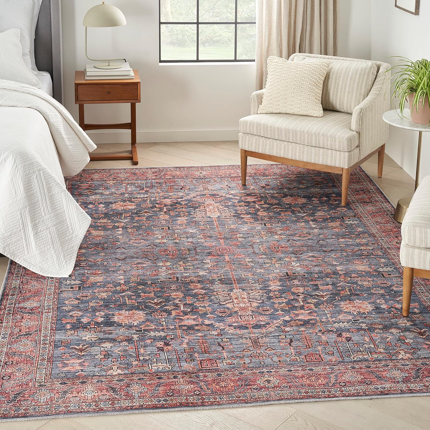 | Item Type Name | Nourison Brilliance Machine Washable Traditional Vintage Navy/Brick 4' x 6' Area Rug, Easy-Cleaning, Non-Shedding, Bed Room, Living Room, Dining Room, Kitchen (4x6) |
