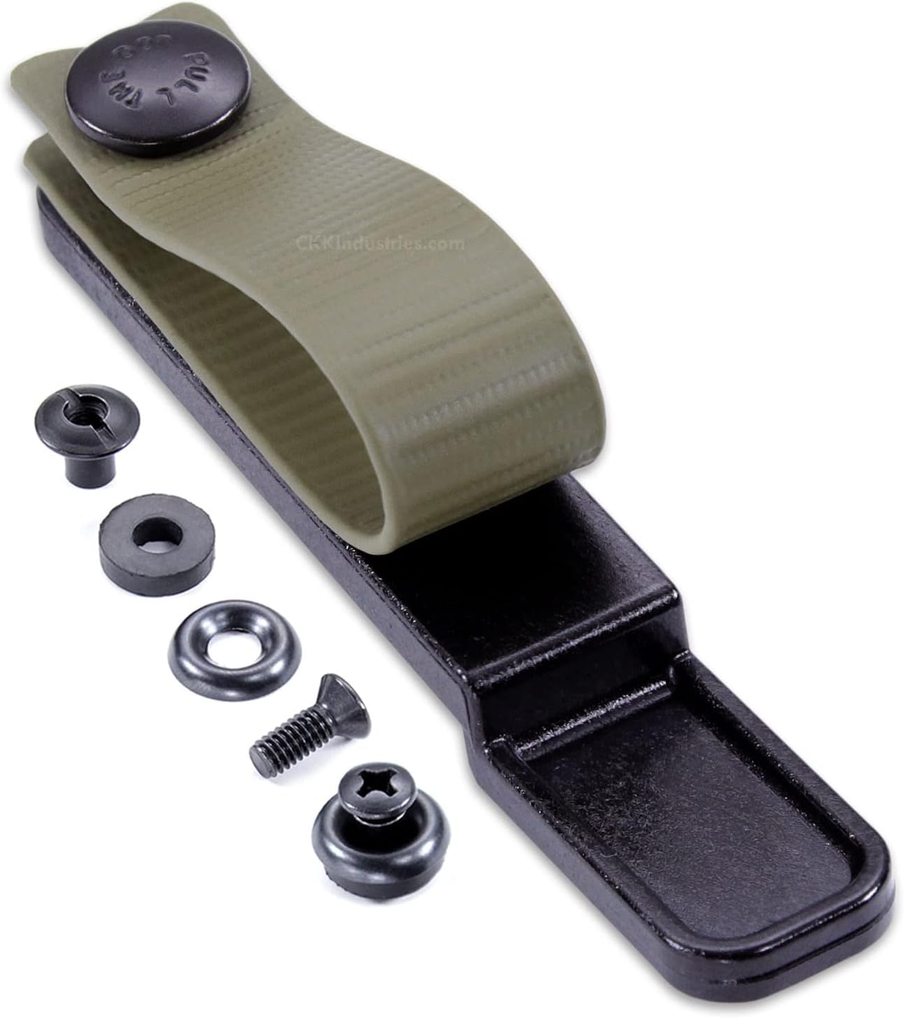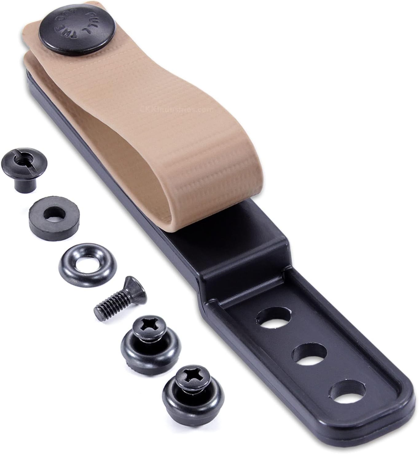 Raven Concealment IWB tuckable struts are offered in both a standard mounting pattern, and in a unique slot to mount soft loops with adjustability and cant to within 1 inch. Each of the pre-drilled holes are 15mm apart center-to-center. On the slotted versions, the center hole, being a slot, allows the strut to rotate up to 10 degrees in either direction. These are available in multiple configurations. Please select above.