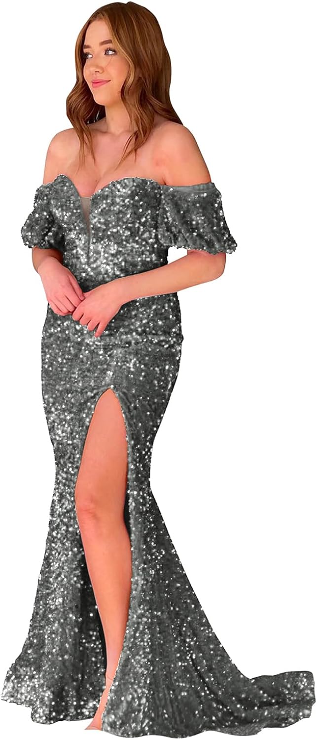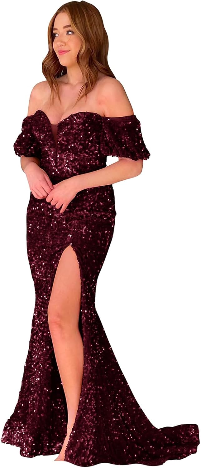 Item Description: This velvet sequin slit long dress with puffy sleeve is very sexy and comfortable. The fabric is sequin with shiny and straight features, which is mostly used in women's fashionable special occasion dresses such as Formal,Prom,Bridesmaid,Evening,Party,Wedding Custom Made: Dresses can be made according to your measurements with no more charges,the measurements we need is:1.Bust 2.Waist 3.Hips 4.Hollow(or Shoulder) to Hem 5.The height of your high heel shoes 6.Shoulder to Bust.after you place the order,pls send us your measurements and order id Product Name: Strapless Deep V-Neck Puffy Sleeve Long Prom Dresses 2024 Slit Mermaid Sequin Evening Gowns for Women Formal Dress Occasion:Bridesmaid Prom Homecoming Coktail Party Wedding Evening Item Type:Sequin Off Shoulder Formal Dress,Slit Prom Dress for Women,V-Neck Evening Party Gowns Waistline:Natural Waist Decoration:sheer deep v-neck Fabric Type:Velvet Sequin Back:Lace up Back Train:Sweep Train Dresses Length:Floor Length Silhouette:Mermaid Neckline:V-Neck/Sweetheart Sleeve Length:Short Puffy Sleeve