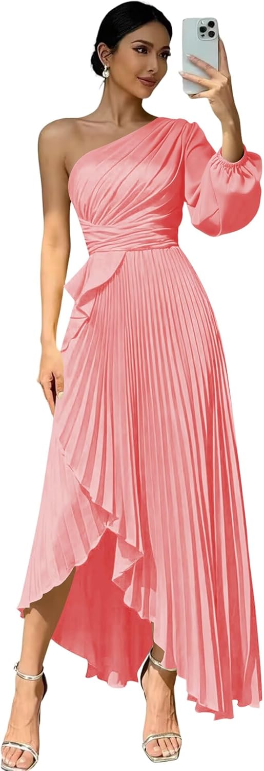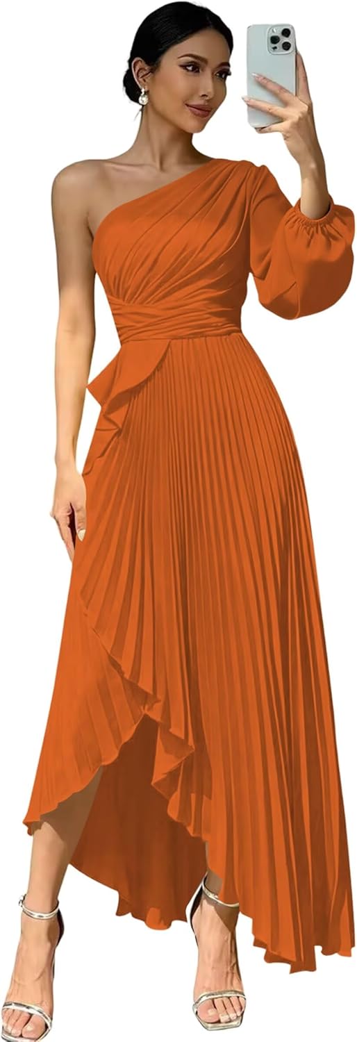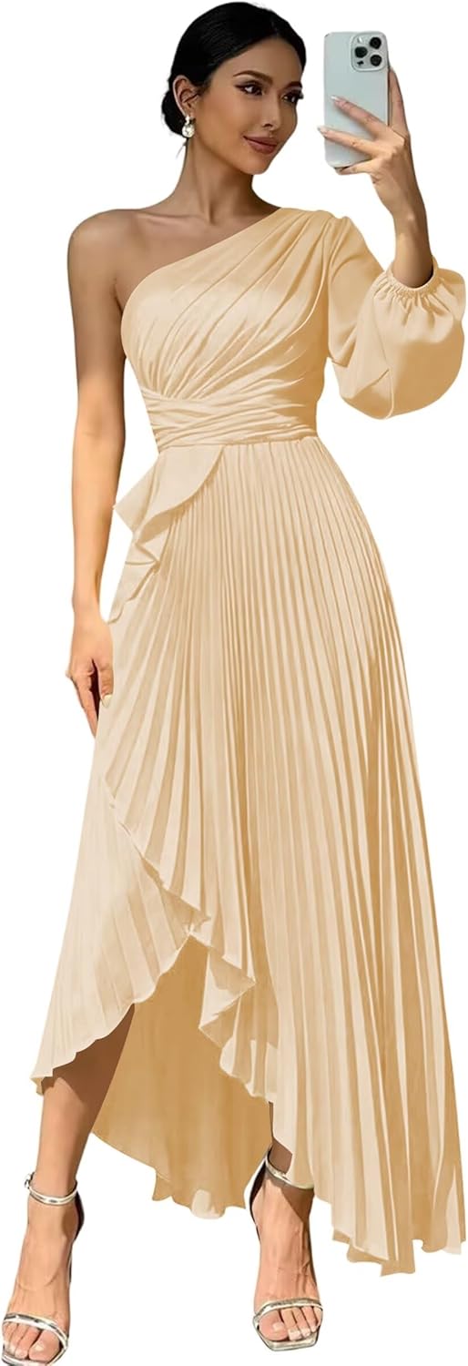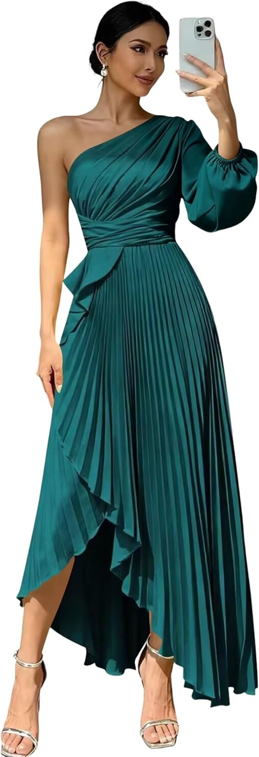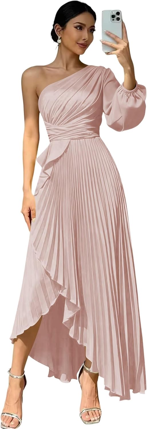 Welcome to "deamify"! Welcome to "deamify",we provide high-quality wedding Prom Dresses,formal dresses,evening dress,party gowns and other special occasion dresses, just buy with confidence and we will be pleased to serve you. Features:Flowy One Shoulder Bridesmaid Dresses,Elegant Long New Trendy Fashion Satin Evening Dresses for Women,Sexy Long Sleeves Maxi Dresses for Wedding Guest. Fabric:Soft Satin and All Lined Sleeve: Long Sleeves Silhouette: A-line Back Design:Lace Up Back Closure