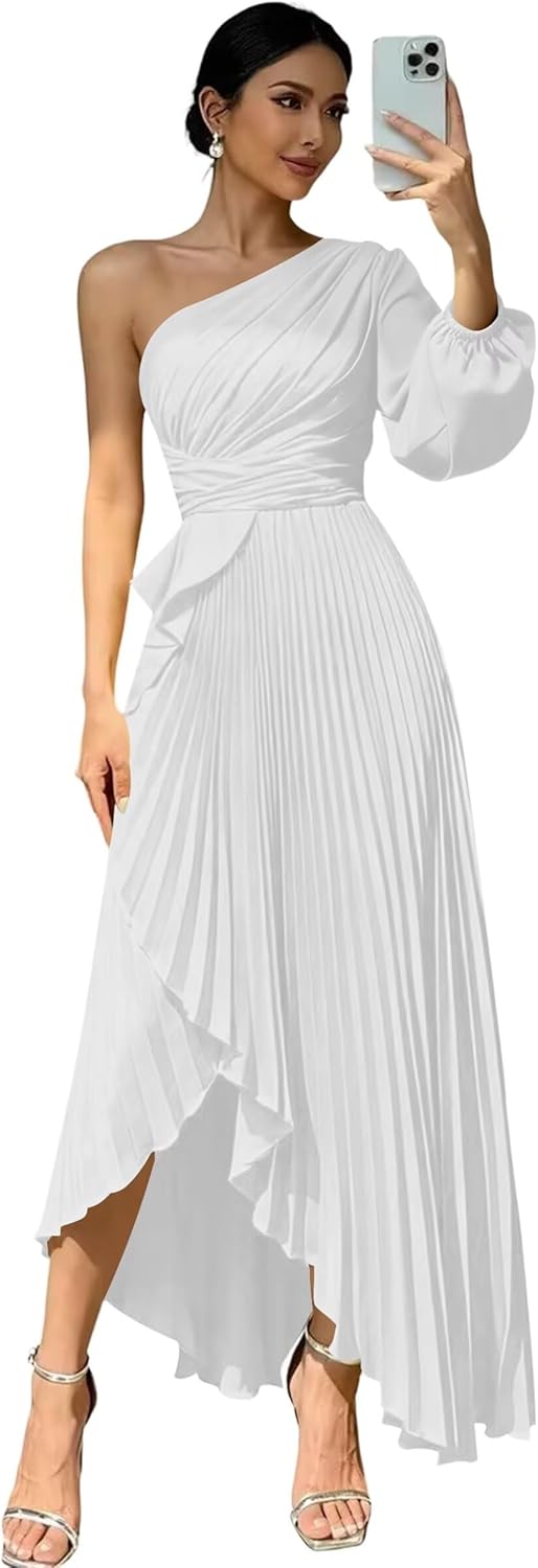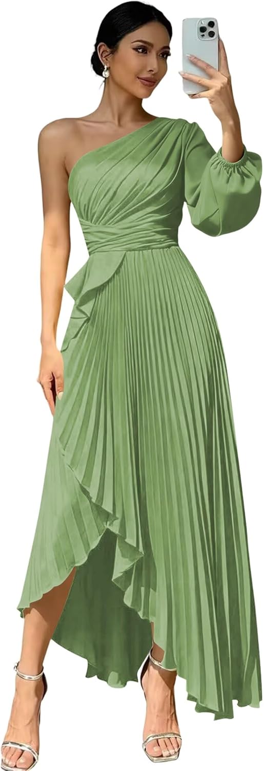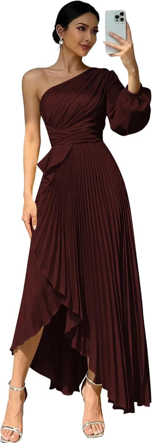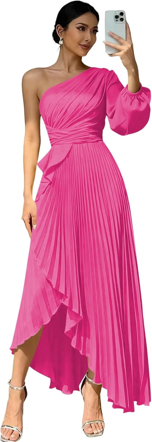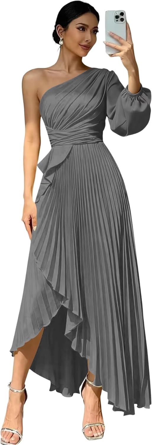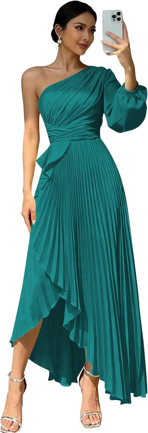 Welcome to "deamify"! Welcome to "deamify",we provide high-quality wedding Prom Dresses,formal dresses,evening dress,party gowns and other special occasion dresses, just buy with confidence and we will be pleased to serve you. Features:Flowy One Shoulder Bridesmaid Dresses,Elegant Long New Trendy Fashion Satin Evening Dresses for Women,Sexy Long Sleeves Maxi Dresses for Wedding Guest. Fabric:Soft Satin and All Lined Sleeve: Long Sleeves Silhouette: A-line Back Design:Lace Up Back Closure