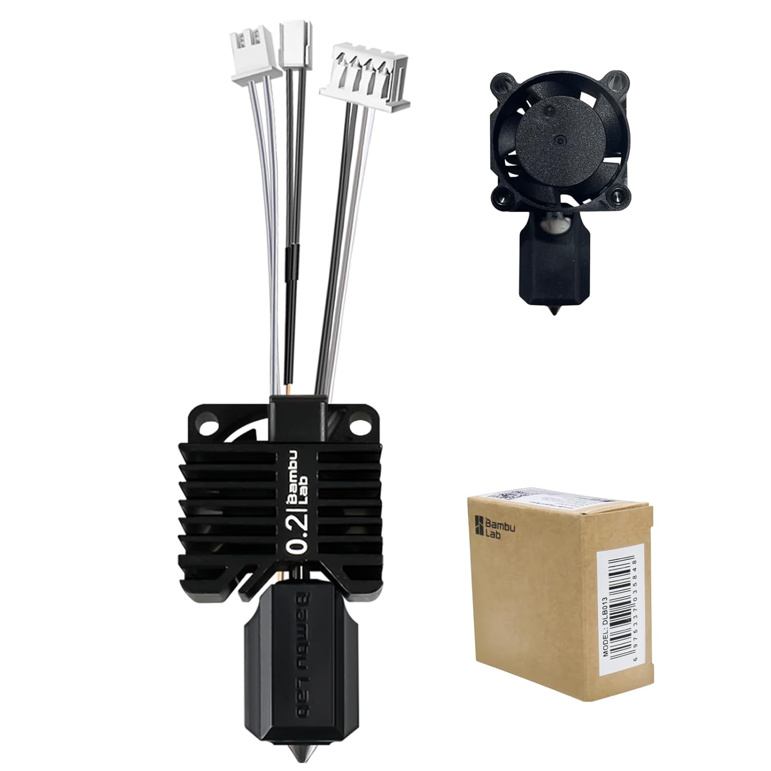 Original Bamboo Lab P1 Hotend Assembly Complete with Stainless Steel 0.2mm Nozzle,Ceramic Heater,Thermistor, Cooling Fan,Silicone Sock for P1S P1P 3D Printer Extruder Heating Block Replacement