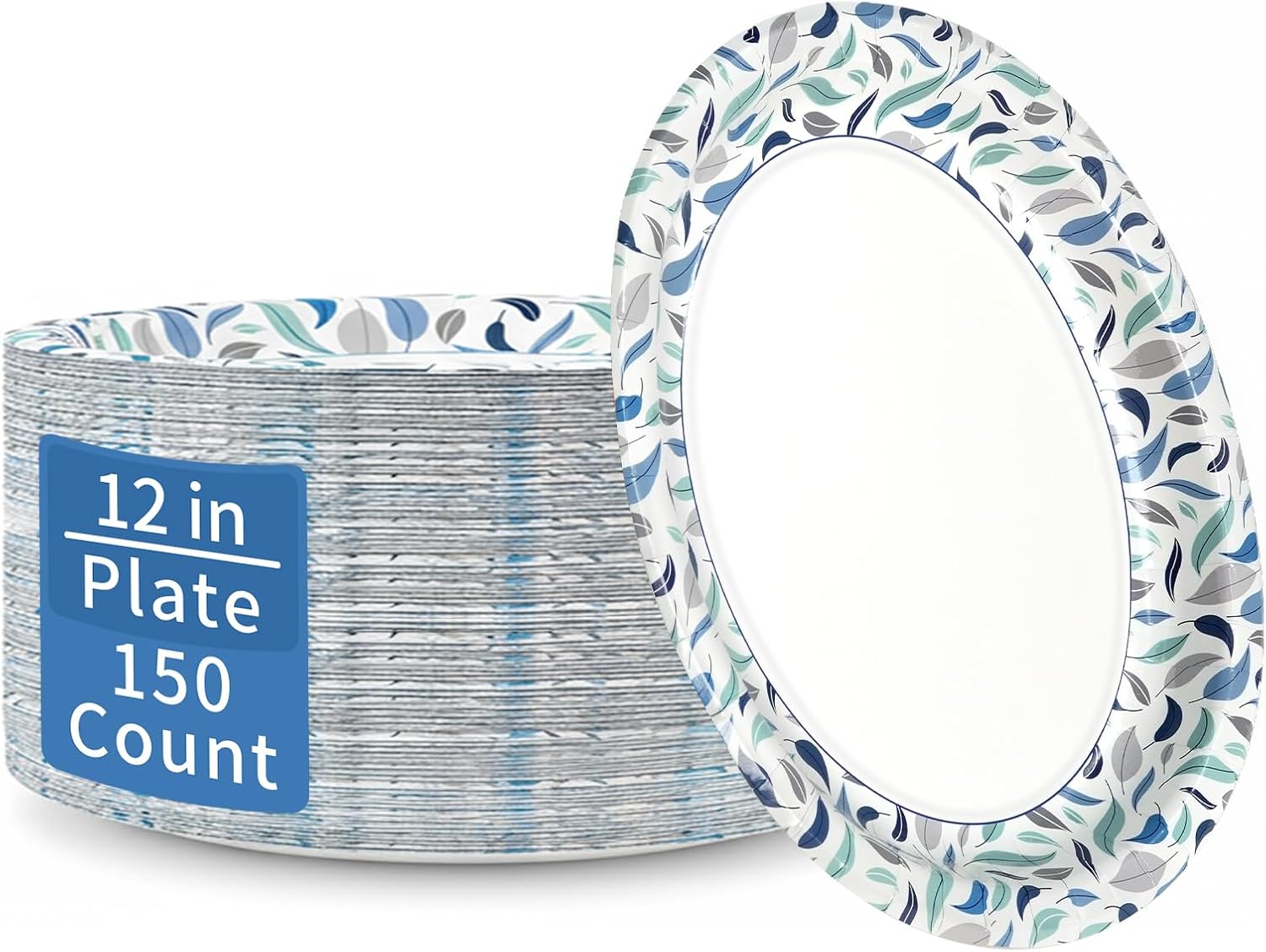 Upgrade your table settings with this set of 300 large paper plates, each designed as disposable plates 10 inch in diameter. These round paper plates feature a clean white center elegantly framed by a delicate green leaf pattern, combining ample serving space with sophisticated style for everyday meals and special gatherings alike. Crafted for reliability, these paper plates 10 inch are made from sturdy, coated material that resists grease and leaks while maintaining their shape under hearty or saucy foods. Perfect for serving as disposable dinner plates at birthdays, BBQs, picnics, and family dinners, they bring both practicality and visual appeal to any occasion. Designed for effortless hosting, these disposable dinner plates eliminate cleanup entirely—simply use and discard. As dependable disposable plates 10 inch, they keep your space tidy during parties, outdoor events, or busy mealtimes, offering a perfect balance of quality, convenience, and style.