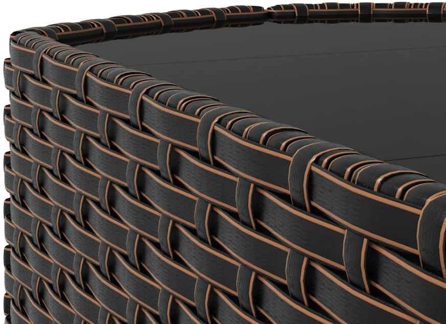 It includes two corner sofas and a coffee table, designed to create a comfy hangout for outdoor get-togethers, blending nicely with nature while looking great. Durability: Built with high-quality PE rattan, this lounge set stands up to the weather and stays looking good all year round. The strong materials mean you can enjoy your outdoor space no matter the conditions, making it a smart buy for the long haul.Weather Resistant: This lounge set is designed for outdoor use, featuring materials that can handle moisture and UV rays. You can be relaxed knowing your furniture will stay beautiful, no matter the weather.Modular Design: The handy modular design gives you plenty of options to fit your individual space and style. Mix up your outdoor seating arrangement without any complicated tools—perfect for having folks over or just enjoying some peace and quiet outside.Comfortable Seating: With plush cushions, this lounge set guarantees a comfy lounging experience for you and your guests. The cushion covers come off easily for washing, so your seating can stay fresh and inviting after gatherings.Great Looks: The classy brown finish ups the overall look of your outdoor area, fitting in with any decor. Its sleek design makes a statement while providing a comfy spot for gathering in your backyard or patio.Color: BrownShape: RectangularMaterial: Synthetic Poly RattanFinish: Powder-CoatedIndoor/Outdoor: Outdoor OnlyCover Included: NoMaximum Number of People: 2Dimensions: 20.9 x 30.7 x 11.6 in (W x L x H)Surface Height: 0.4 inLeg Height: 29.5 inWeight: 45.53 lbsSeat Depth: 21.7 inSeating Capacity: 2Swings: NoDelivery Contains: 2 x Corner sofa, 2 x Seat cushion, 4 x Pillow, 1 x Coffee tableAssembly Required: YesRecommended Number of People for Assembly: 2