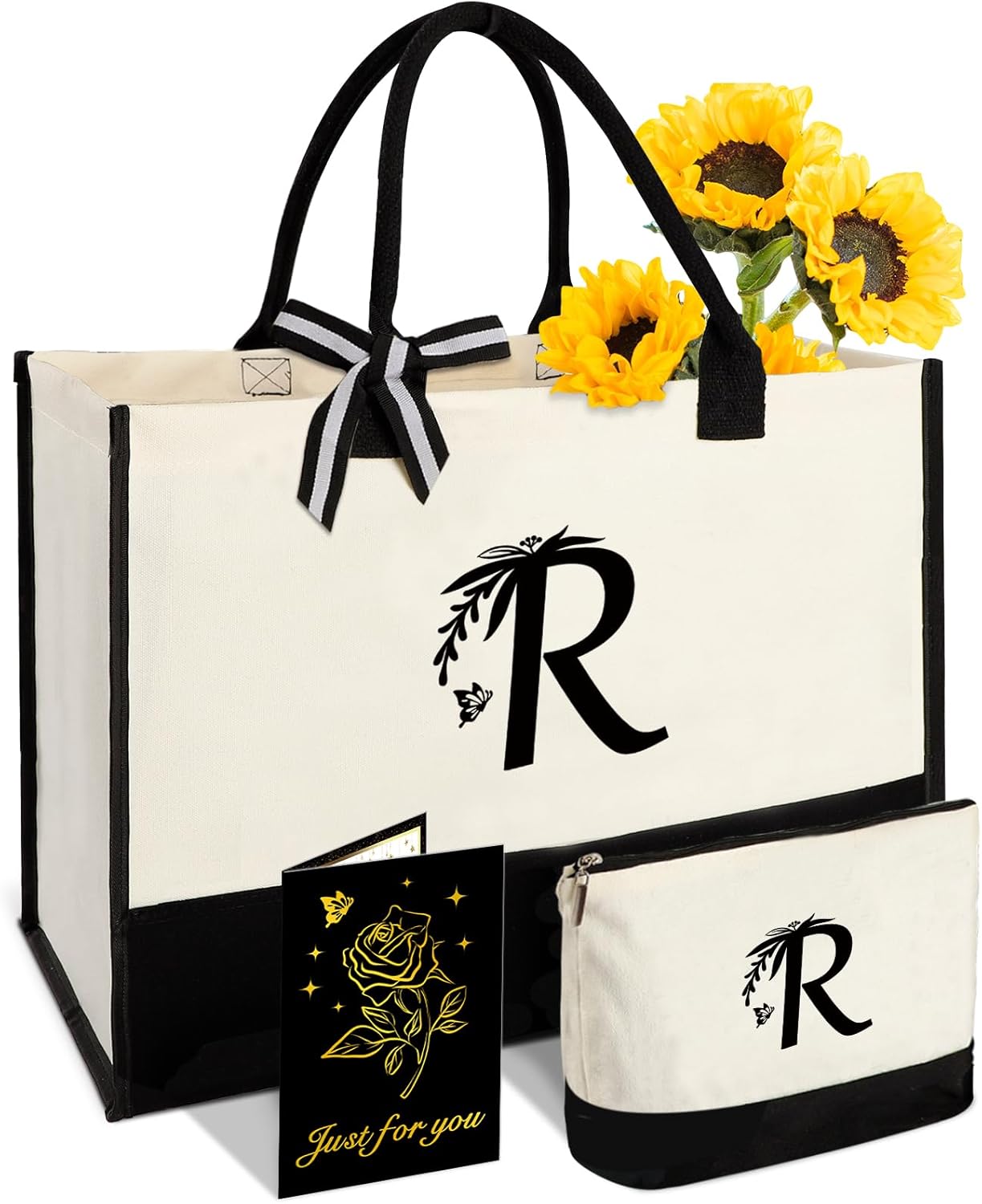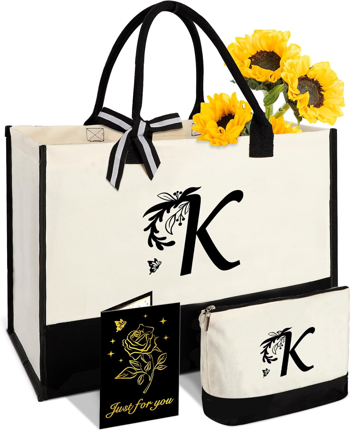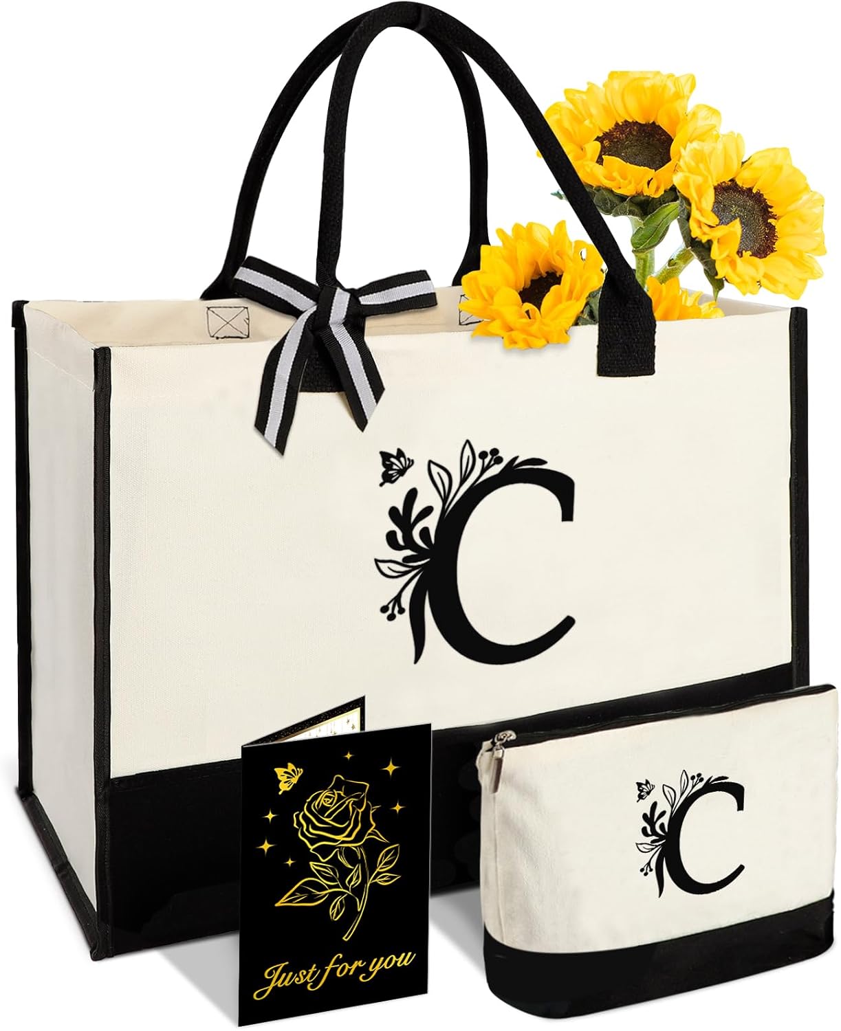 • Great Birthday Gifts for Her: This monogrammed gift for women contains: 1 X custom tote bag, 1 X cosmetic bag, 1 X greeting card. Elevate her style with this personalized gift bag featuring her own initial printed on the front of the bag, simple yet distinctive. Two-tone stitching technology makes the birthday bag for women more retro and beautiful, and turns it into a unique gift