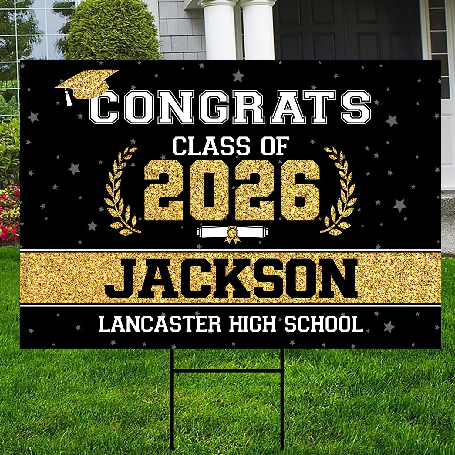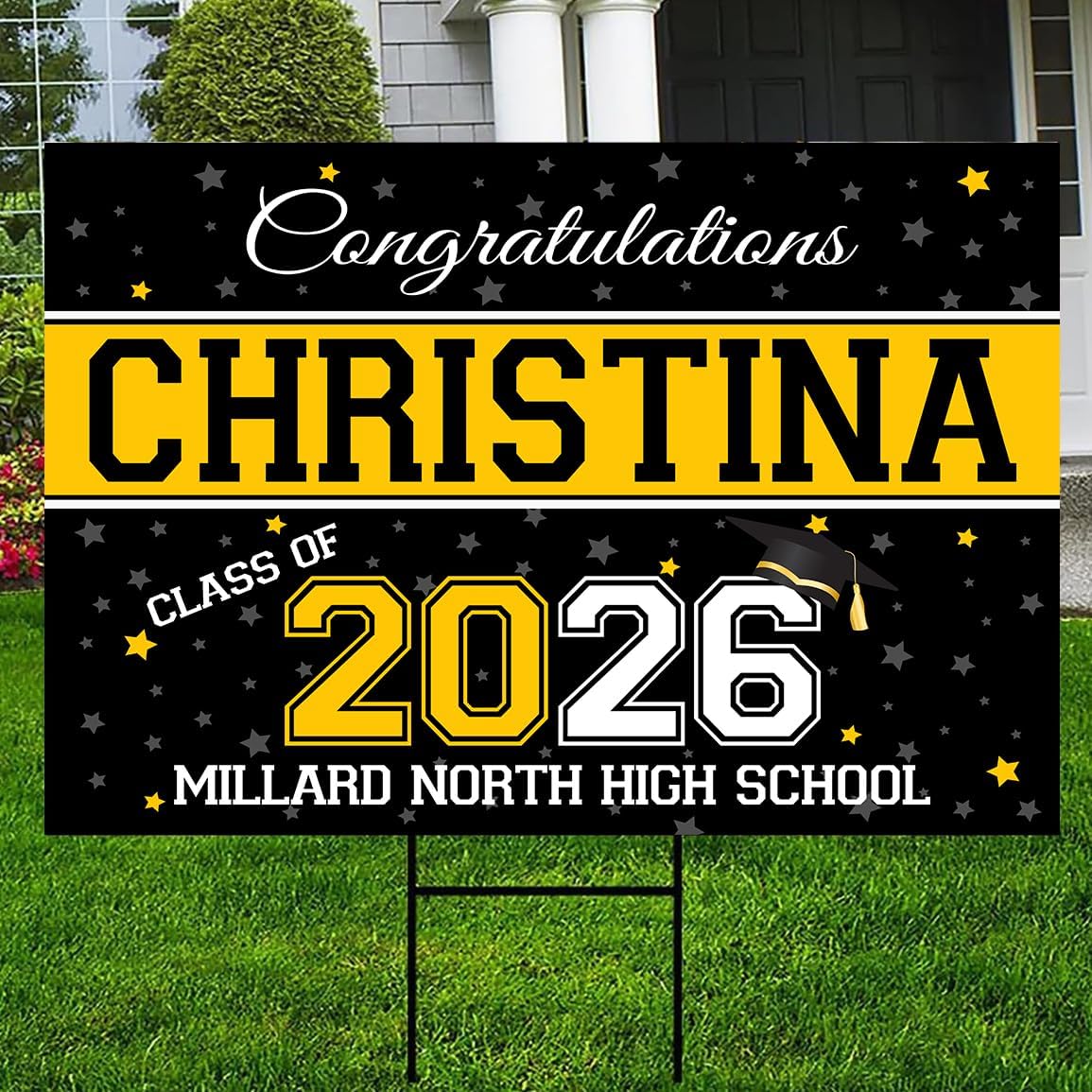 Personalized Graduation Yard Sign Class Of 2026, Graduation Senior Sign 2026, Graduation Decorations Lawn Sign✔ Celebrate the Class of 2026 with our stunning, personalized Graduation Yard Sign! Perfect for high school and college graduates alike, this outdoor sign is a fantastic way to announce and honor your graduate's accomplishments.✔ The vibrant, weather-resistant design features customizable text to showcase your graduate's name, school, and graduating year. The sign serves as both a wonderful decoration for your outdoor celebration and a memorable keepsake for years to come.✔ Our Graduation Yard Sign makes an ideal gift for the proud graduate in your life or a thoughtful addition to your own graduation party. Order your personalized Class of 2026 Graduation Sign today and make the moment even more special!