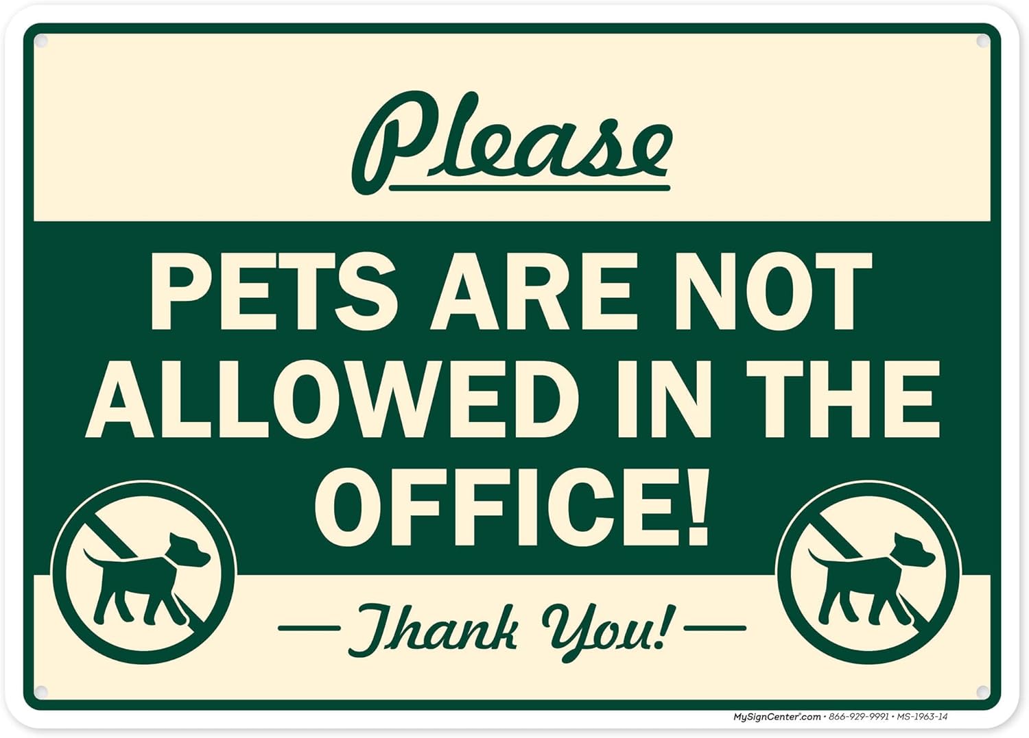 Please Pets Are Not Allowed In The Office Sign, 12x18 Inches, 55 mil thick HDPE (high density polyethylene), Made in USA by My Sign Center
