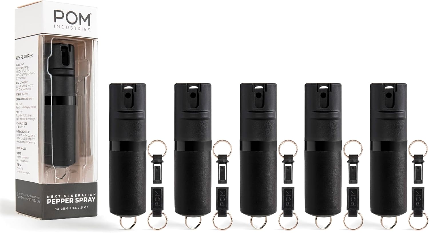 The POM Pepper Spray Keychain - our traditional keychain model that easily attaches to any keyring or lanyard accessory. This model is ideal for those who carry house or car keys with them. Optimal size for discreet carry, POM Patented Flip-Top design allows the unit to be in both "safety" and "ready-to-fire" state at all times. Maximum strength formulation (1.40 % M.C. ) with HLPC testing provides consistent heat performance. Safe, accurate, and easy-to-use, recognized by elite trainers across the country as the go-to self-defense spray on the market. POM seamlessly integrates into your everyday life.