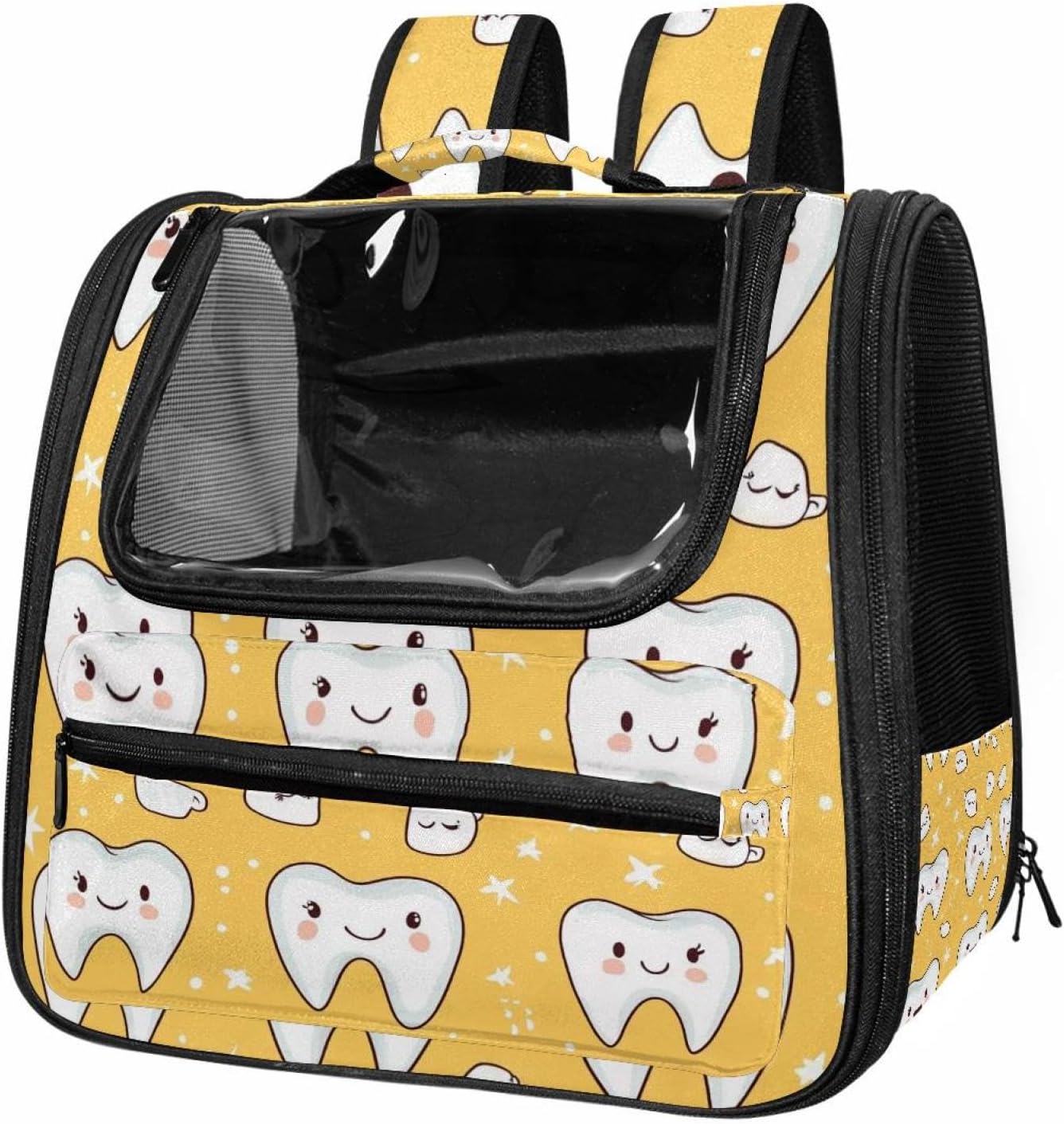 Well made: Cat Backpack Carrier is made from 900D oxford fabric, pp webbing, velvet, nylon, which is very sturdy, environmentally friendly and breathable. Not easily scratched by pet’s claws, pet backpack carrier is SAFETY & ANTI-SCRATCH. The back padding will give you a comfortable and breathable experience. Ventilated Backpack: With a breathable window in the front, this pet backpack allows cats to enjoy the sun without feeling stuffy. There are two side pockets and one big front pocket, and you can take foods or toy for your kitten pet. It is big enough for cat to turn around, and there are side pockets and hook holes, you will enjoy the greatest convenience when taking your cat out. Perfect size: Cat carrier is 15.75x9.84x13.78in/40x25x35cm. Fits most small/medium sized cat, dog, and pet. Quality fleece bed provide a comfortable place for your pet. Lightweight and easy to carry to all places. Built-in harnesses keep your naughty friends from escaping. Removable cosy mat for easier cleaning and let your pet enjoy it inside. Easy to carry: The adjustable shoulder strap of pet carrier bag help you hands-free carrying and makes it the most safe and convenient pet carrier bag for your travel. Seat belt design provide pets with safety protection throughout the trip. Pad protection keep your pets comfortable during travel. Unique Design: Innovative inside graphic design gives you a stereoscopic 3D visual experience. You also send us the photos you interest to make your unique dog or cat carrier. Pet bag is also a amazing gift for pet lover.