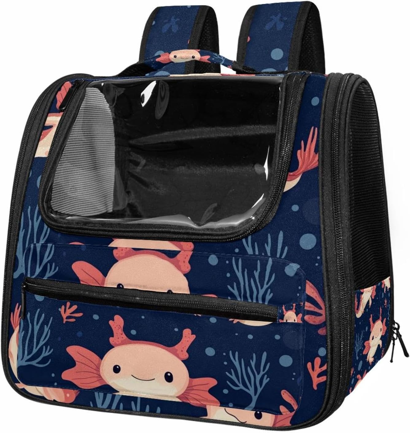 Well made: Cat Backpack Carrier is made from 900D oxford fabric, pp webbing, velvet, nylon, which is very sturdy, environmentally friendly and breathable. Not easily scratched by pet’s claws, pet backpack carrier is SAFETY & ANTI-SCRATCH. The back padding will give you a comfortable and breathable experience. Ventilated Backpack: With a breathable window in the front, this pet backpack allows cats to enjoy the sun without feeling stuffy. There are two side pockets and one big front pocket, and you can take foods or toy for your kitten pet. It is big enough for cat to turn around, and there are side pockets and hook holes, you will enjoy the greatest convenience when taking your cat out. Perfect size: Cat carrier is 15.75x9.84x13.78in/40x25x35cm. Fits most small/medium sized cat, dog, and pet. Quality fleece bed provide a comfortable place for your pet. Lightweight and easy to carry to all places. Built-in harnesses keep your naughty friends from escaping. Removable cosy mat for easier cleaning and let your pet enjoy it inside. Easy to carry: The adjustable shoulder strap of pet carrier bag help you hands-free carrying and makes it the most safe and convenient pet carrier bag for your travel. Seat belt design provide pets with safety protection throughout the trip. Pad protection keep your pets comfortable during travel. Unique Design: Innovative inside graphic design gives you a stereoscopic 3D visual experience. You also send us the photos you interest to make your unique dog or cat carrier. Pet bag is also a amazing gift for pet lover.
