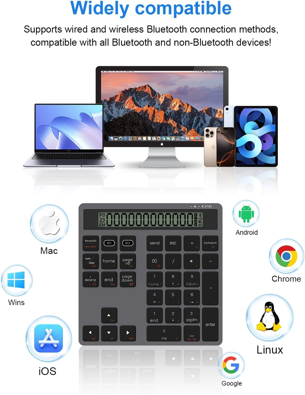 | Additional Features | 2-IN-1 Wireless & Wired, Keypad with Display Calculator, Portable, Rechargeable, Silent |
