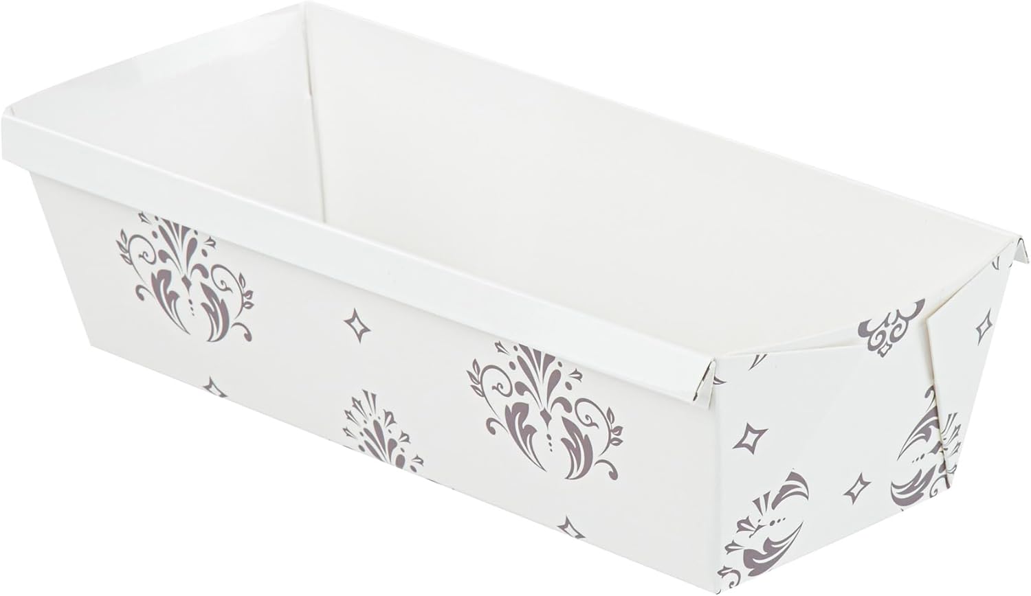 Bake to perfection with reusable convenience. The Bake Tek Grease-Resistant Oven-Safe Baking Tray, crafted from sturdy paper, resists warping at temperatures up to 390F, ensuring consistent baking results for your quick breads or pound cakes. This disposable baking tray is grease-resistant, preventing leaks and maintaining the elegant presentation of your treats, making it an essential tool for any bakery or cafe. With its 7.8-inch by 3.6-inch size, this oven-safe baking mold offers versatility as it is freezer and microwave safe, accommodating a range of food preparation needs. The charming beige color with a floral background and white interior seamlessly blends with any decor, adding an attractive touch to your displays. Enhance your bakery’s efficiency and aesthetic appeal with this paper loaf pan. Each order includes 100 Bake Tek Grease-Resistant Oven-Safe Baking Trays.